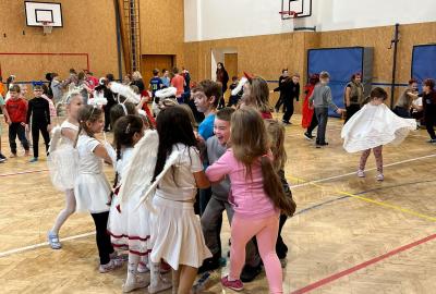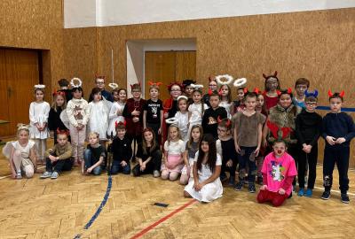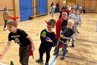 Dne 3.12.2025 jsme se sešli v tělocvičně jako čerti a andělé!