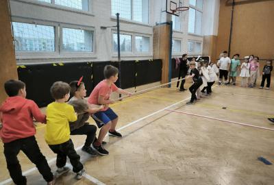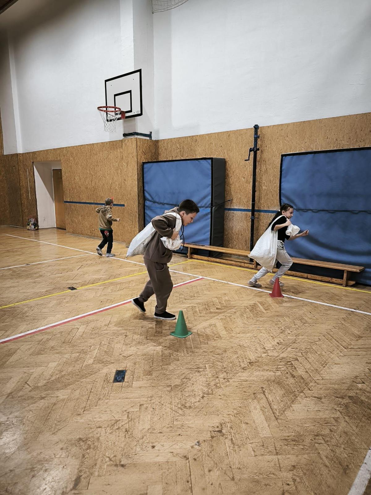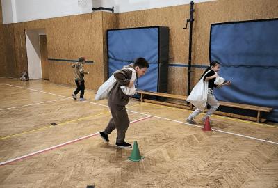 Děti si zatsoutěžily na různorodých stanovištích. Vyzkoušet si mohly přenášení pytle, přetahování lanem či hod do koše.