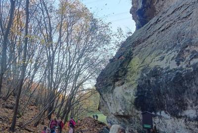 Po odpočinku jsme se vydali ke Skalním srubům Jizery. Jedná se o přírodní památku - strmý sráz řeky s pseudokrasovým výklenkem, který vznikl boční erozí Jizery na soutoku se Zábrdkou.