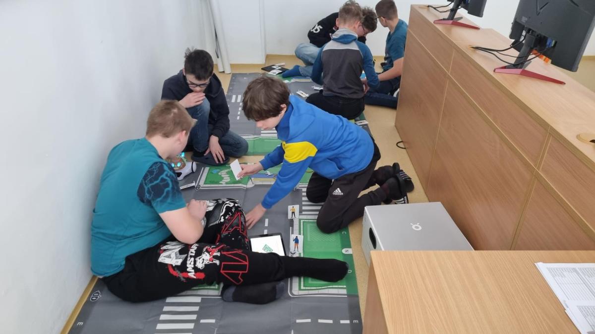 Závěr dne patřil odlehčené části, při které si žáci vyzkoušeli práci s malými pojízdnými roboty PhotonBot. Pomocí jejich funkcí si zahráli různé tematické hry – například simulaci nákupu, městské dopravy nebo hledání skrytého „zloděje“. Tato aktivita nabídla nejen zábavu, ale také další pohled na možnosti využití moderních technologií.