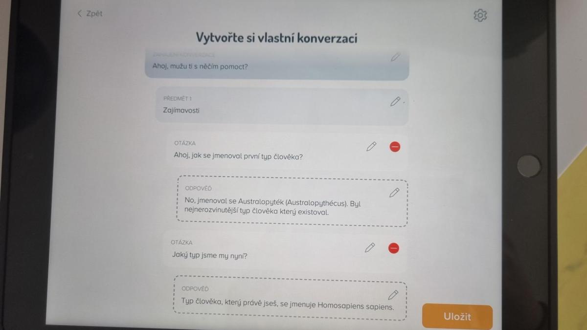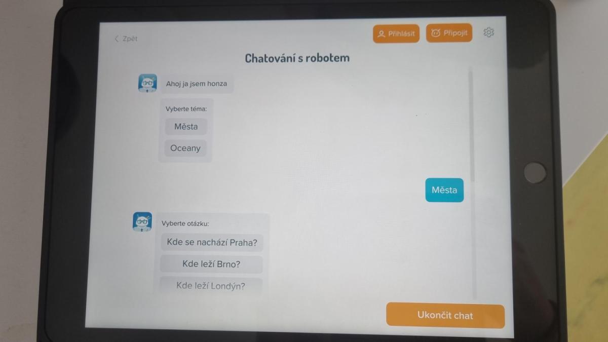 Pro zpestření programu si žáci vyzkoušeli vytvořit vlastního jednoduchého, čistě algoritmického chatbota. Díky tomu si mohli lépe uvědomit, na jakých principech podobné systémy fungují, a jaký je rozdíl mezi předem naprogramovanými reakcemi a pokročilými modely umělé inteligence.