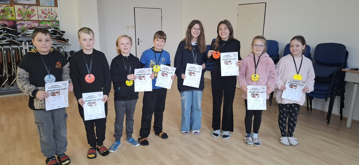 Naše škola se již druhým rokem úspěšně zapojila do celorepublikové předmětové soutěže Bobřík informatiky. Soutěž je určena pro bystré žáky se zájmem o svět technologií a logické myšlení, přičemž letos se do ní aktivně zapojili žáci 4. a 5. ročníků. Cílem Bobříka je ukázat, že informatika je víc než jen ovládání počítače – jde o informatické myšlení, algoritmizaci, práci s daty, porozumění informačním systémům a společenským aspektům digitálních technologií.