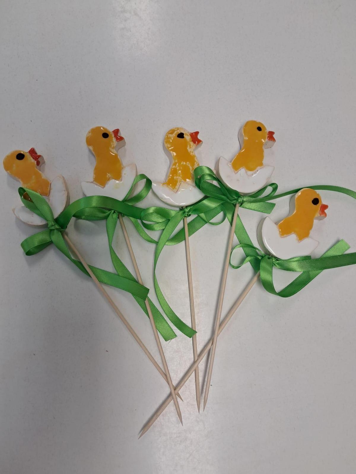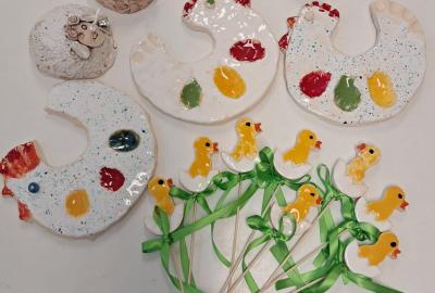 Děti z keramického kroužku přivítaly jaro s nadšením a tvořivostí. Jejich keramické výrobky přinášejí svěží jarní náladu a připomínají, že se blíží radostné velikonoční svátky.