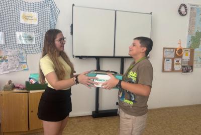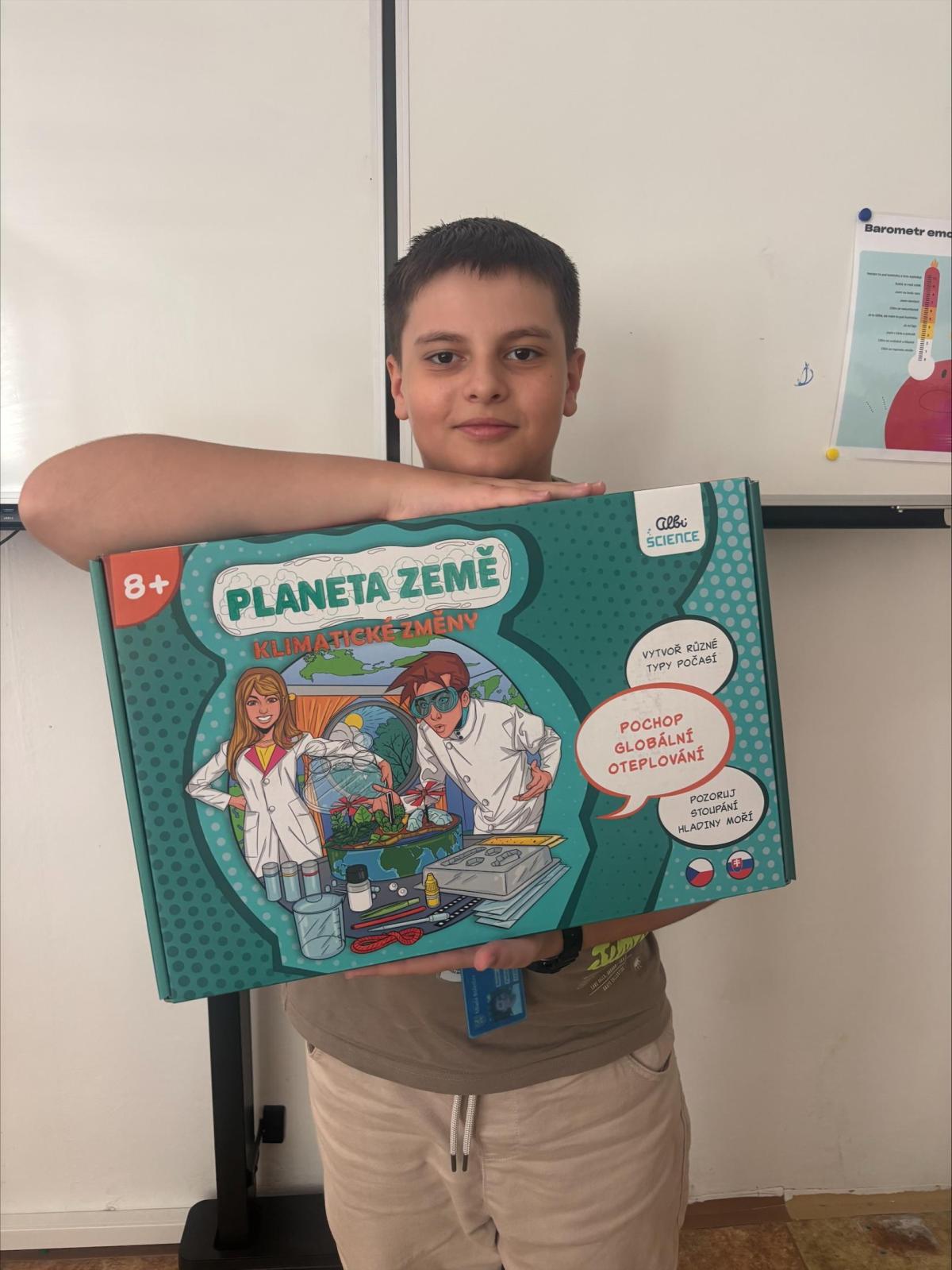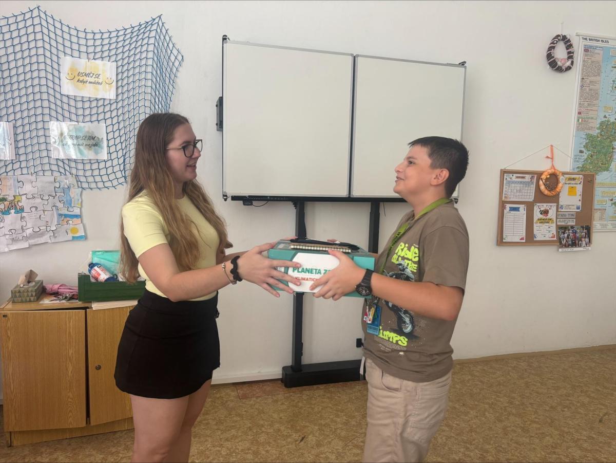 Žákovi Romanovi Paskalovi ze 7.B byla na začátku září předána odměna za výhru ve výtvarné soutěži s názvem "Máme rádi přírodu".