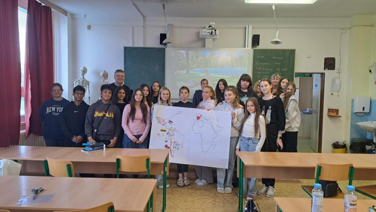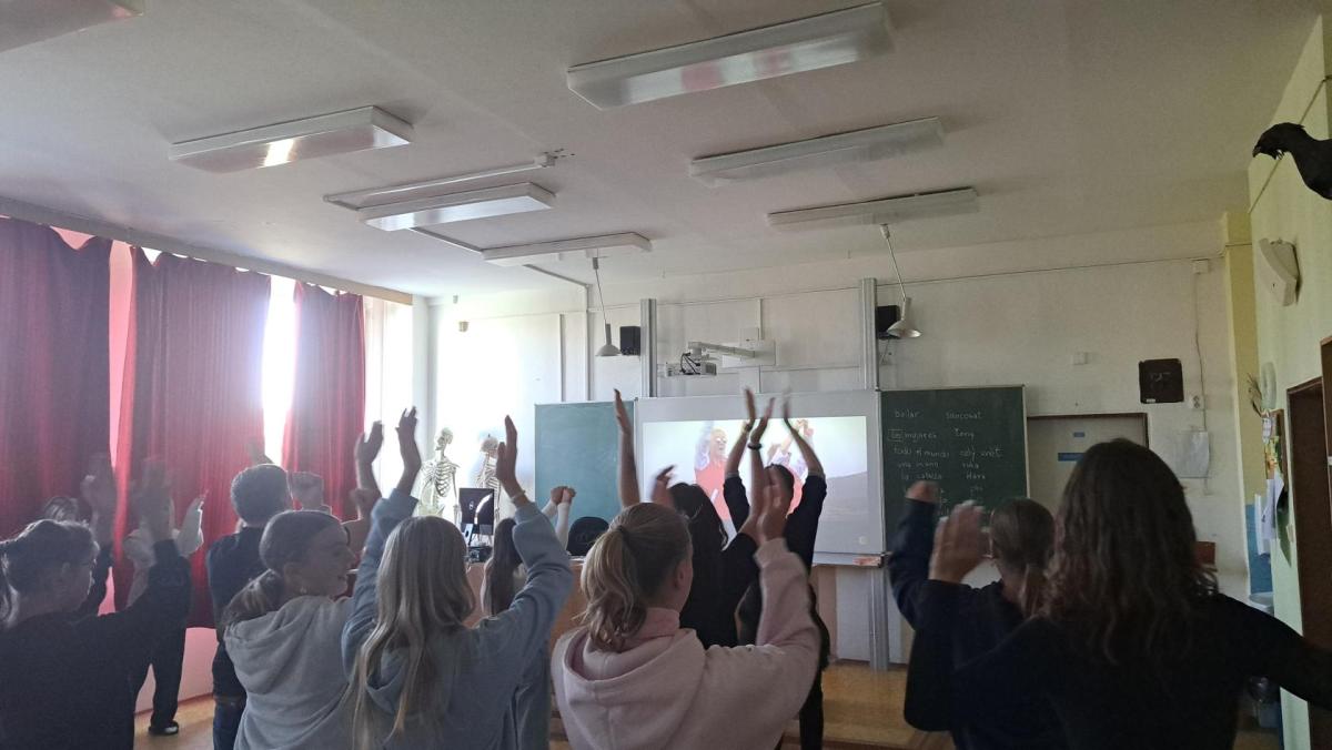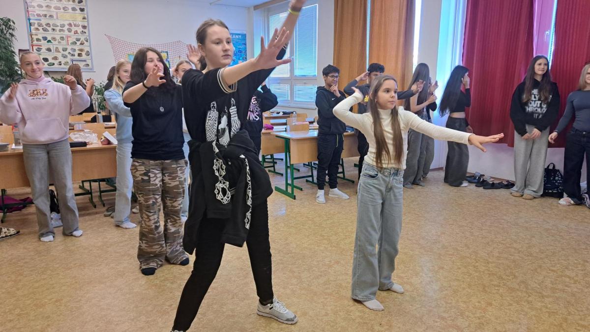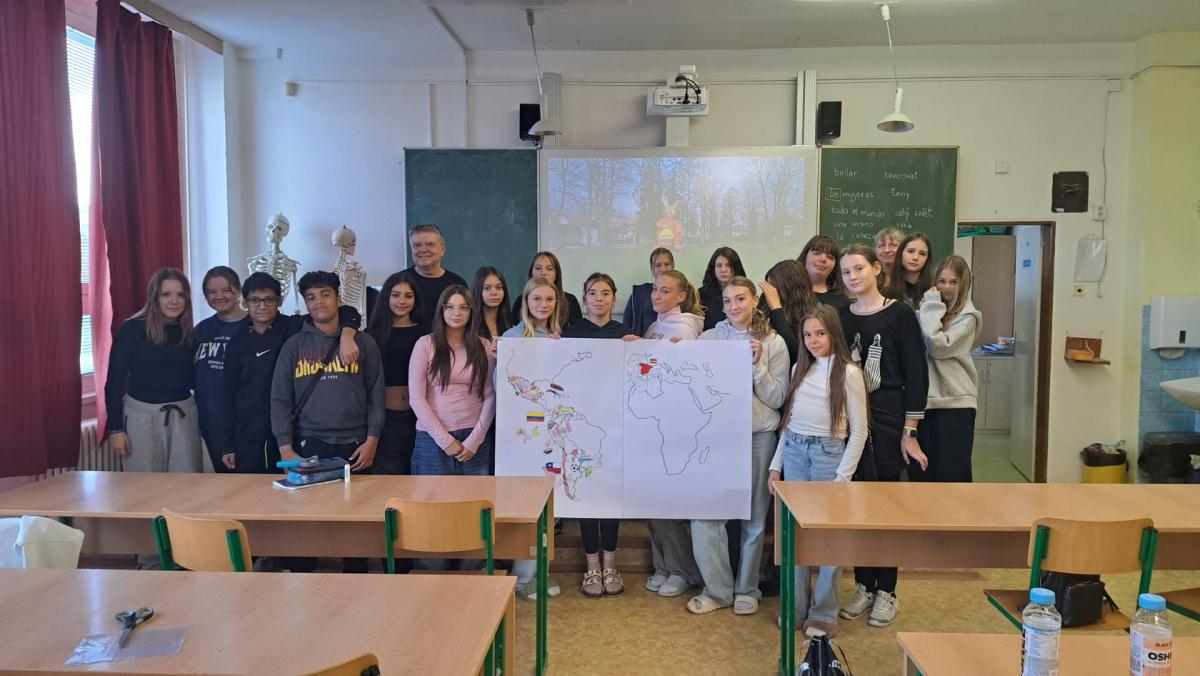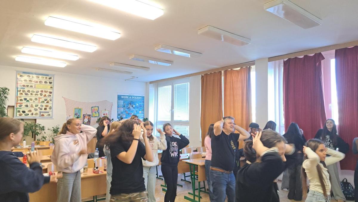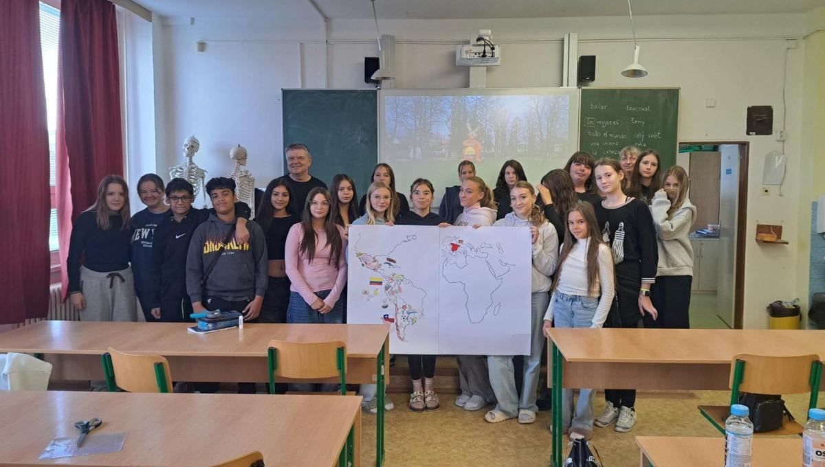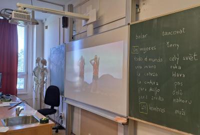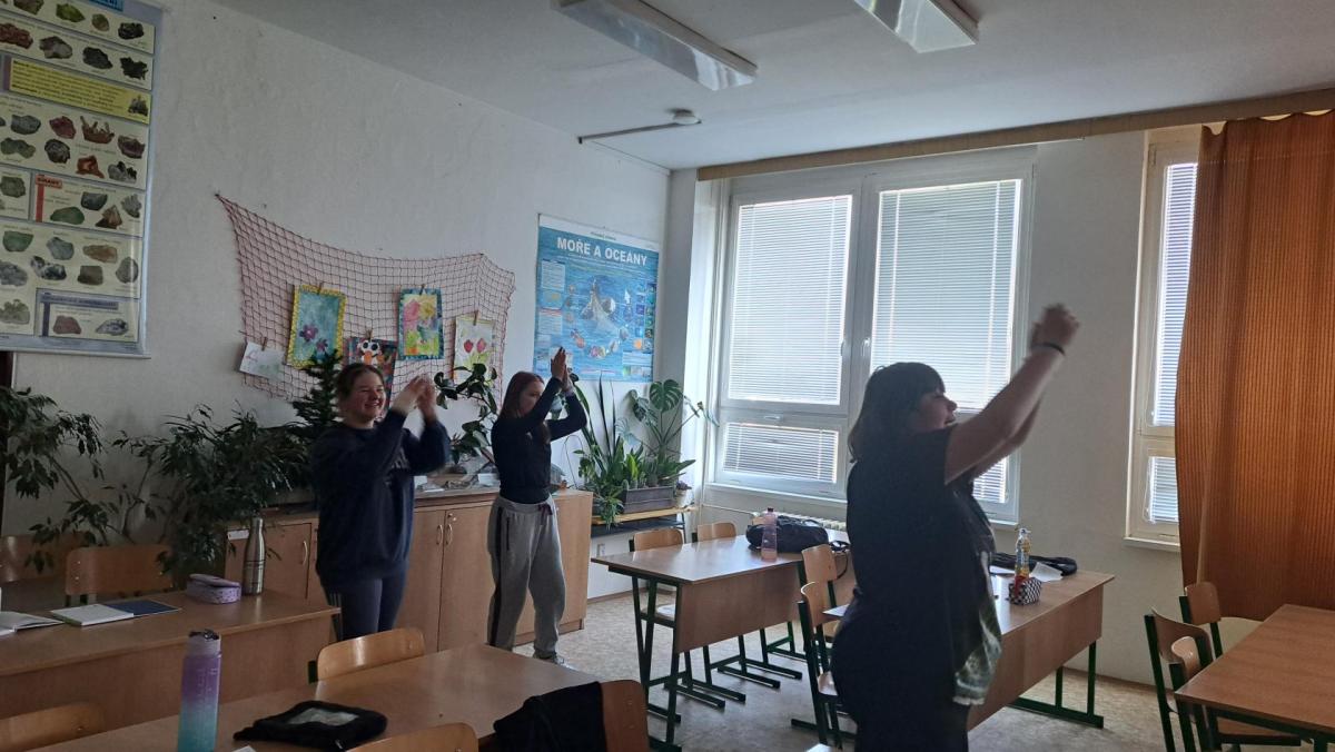 Naladili jsme se motivačním videem z Kanárských ostrovů, ty vlastně můžou za to, že nás španělština chytla za srdce. Pak už začala práce s výslovností, napsali jsme si všechna pravidla a pak prozkoušeli všechny přítomné ze čtení čtyř různých slov, co si náhodně vylosovali. Děti to zvládly výborně. Pak přišel tělocvik aneb tanec při písničce La bomba. Před dalším kolem pohybu jsme si vysvětlili, co nová slova znamenají. Po zahřátí svalů jsme se zase vrátili ke španělštině, řekli jsme si něco o členech a naučili se pozdravy. Pak přišla na řadu část zeměpisná. Na obrovskou mapu světa jsme zakreslili většinu států, kde se mluví španělsky. Kromě vlajky jsme ještě vyhledali a nakreslili to, čím jsou státy známé, co je pro ně typické. Poslední hodinu jsme strávili v improvizovaném školním kině, kde jsme se koukli na díl ze španělského seriálu Soy Luna v původním zněním s titulky. A protože v Mexiku se pěstuje kukuřice, udělala nám paní učitelka i popcorn.