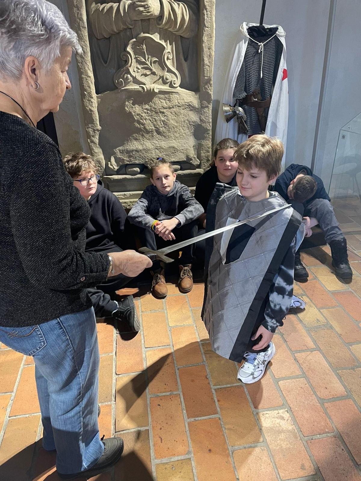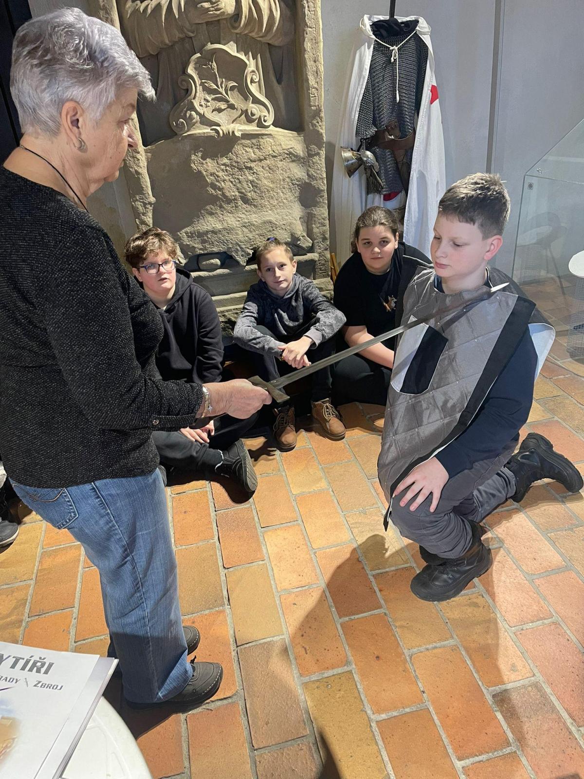 Ve středu 11. února čekal žáky již druhý projektový den Učíme se jinak. Skupina projektu Středověk v praxi zavítala tentokrát do Templu. Čekalo je zde celkem pět dílniček vedených zkušenými lektorkami. Ty je nejdříve v krátkosti seznámily s teorií a následně čekala žáky praxe - ve většině případů tvoření. Žáci se během programu dozvěděli o erbech - o pravidlech jejich vzniku a používání a sami si zkusili svůj erb namalovat. Barvy vzali do ruky i při seznamování se s iniciálami, ozdobnými písmeny využívanými při psaní knih. Samotné psaní si žáci také vyzkoušeli a to přímo husím brkem. Jejich úkolem bylo vyzkoušet si práci s inkoustem a napsat svoje jméno. Samozřejmě nesměla chybět část o rytířském brnění a zbraních. Tady si žáci vyslechli, kdo se mohl stát rytířem, kolik vážilo brnění nebo jak se měl správný rytíř chovat. Všichni byli následně pasováni na rytíře a mohli si vyzkoušet kbelcovou helmu. Středověkou cestu uzavíralo povídání o svatováclavské koruně a dalších korunovačních klenotech. Svou vlastní korunu si mohli žáci vyrobit a odcházeli tak z dílen jako králové.