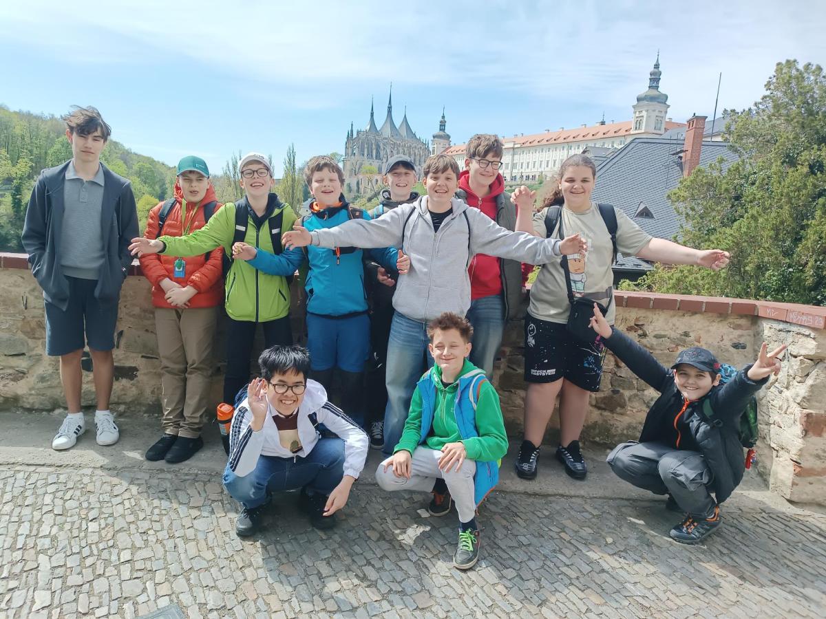 Po návštěvě mincovny čekal žáky chrám svaté Barbory - unikátní gotická katedrála a jedna z nejkrásnějších památek v Čechách. Po cestě mohli žáci obdivovat kostel svatého Jakuba a kochat se nádhernými výhledy na historické centrum Kutné Hory. Chrám si žáci prohlíželi samostatně nebo ve skupinkách, kdy si do telefonu skrz QR kód stáhli mapku a audio nahrávky k poslechu. Katedrála žáky uchvátila, takže se v závěru prohlídky doptávali na spoustu zajímavých informací.