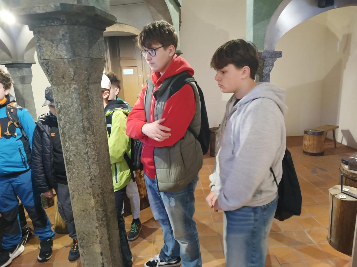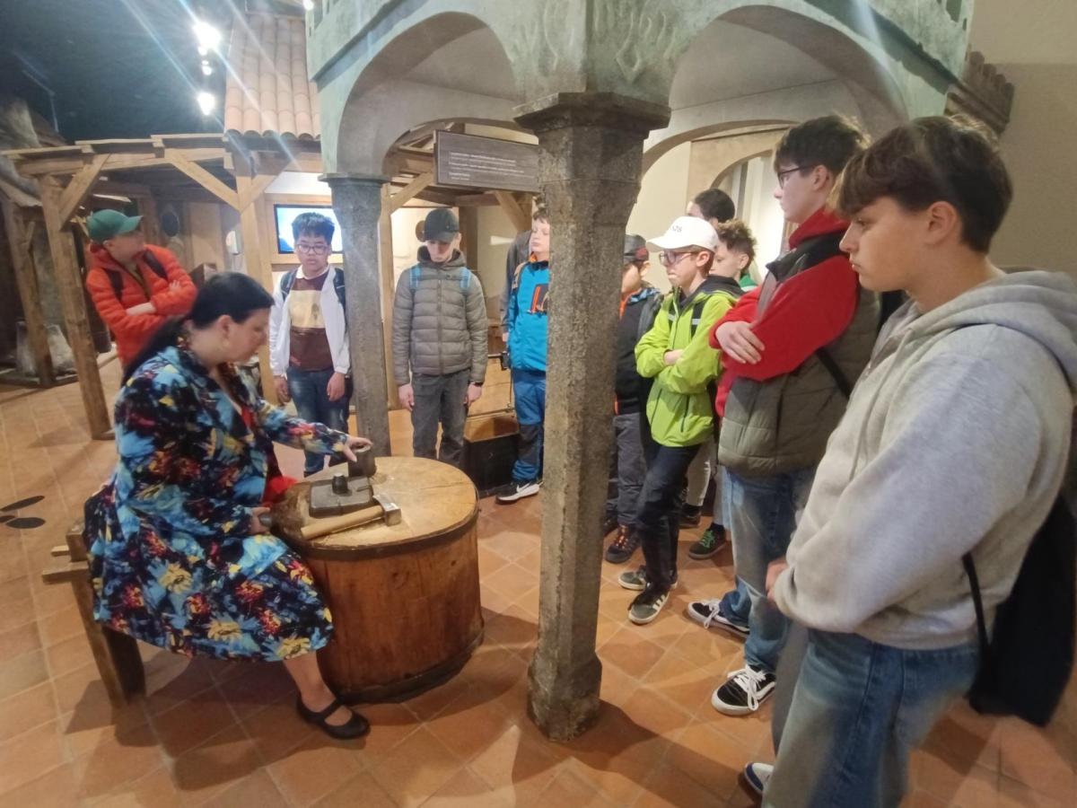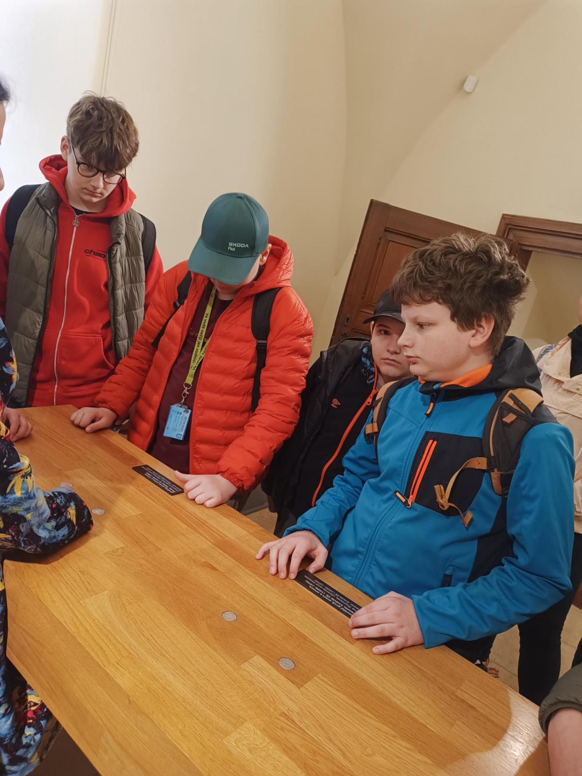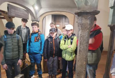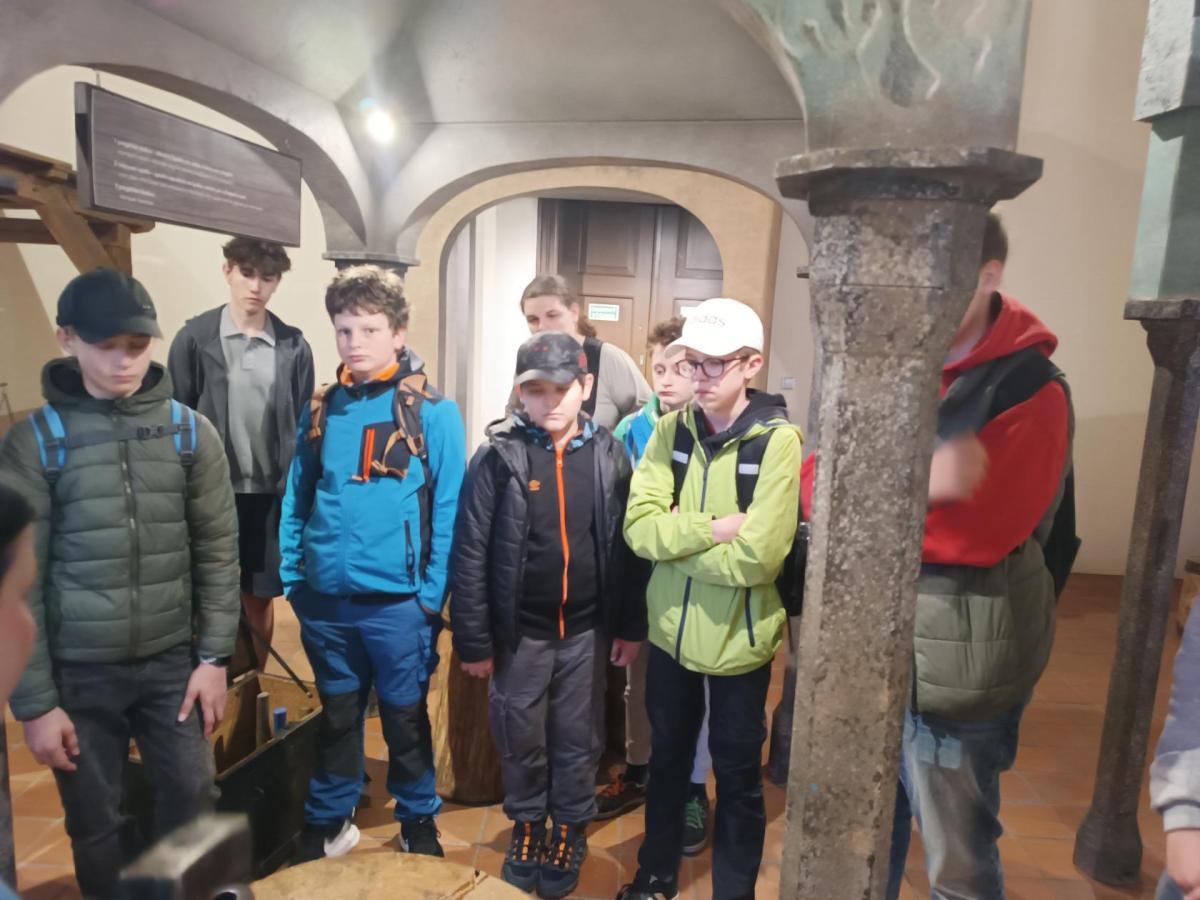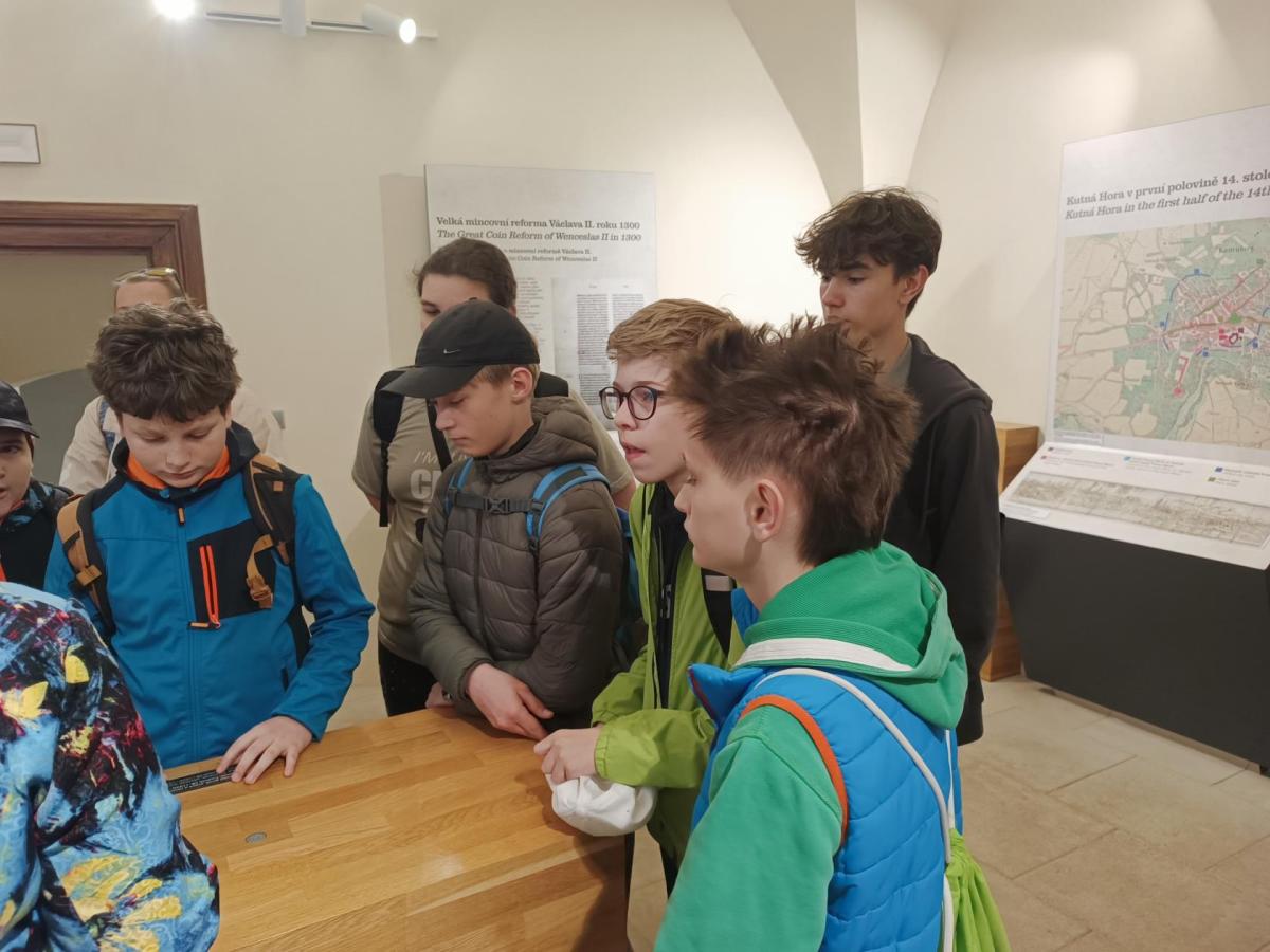 První z nich byl Vlašský Dvůr, kde je velice milá paní průvodkyně provedla mincovnou. Žáci se mohli z jejího vyprávění dozvědět o vzniku Italského dvora, o těžbe stříbra a jeho zpracování. Mohli si prohlédnout různé podoby mincí ražených v Českém království v průběhu středověku. V závěru prohlídky je čekala velice krásná expozice, kde si mohli prohlídnout krok po kroku zpracování stříbrné rudy. Prohlídku zakončilo ražení pražský grošů.