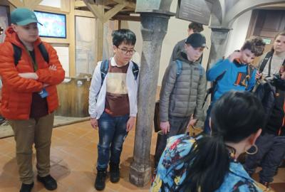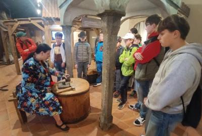Po Vlašském dvoře a chrámu svaté Barbory bylo na řadě objevovat skrytější, ale stejně kouzelná místa Kutné Hory. Žáci se proto uličkami města vydali vstříc Kamenné kašně a následně s menší dopomocí městské dopravy dorazili i ke kostnici v Sedlci.