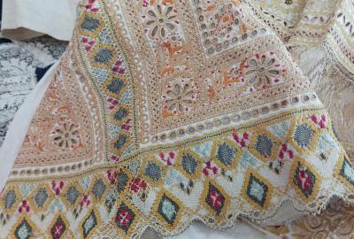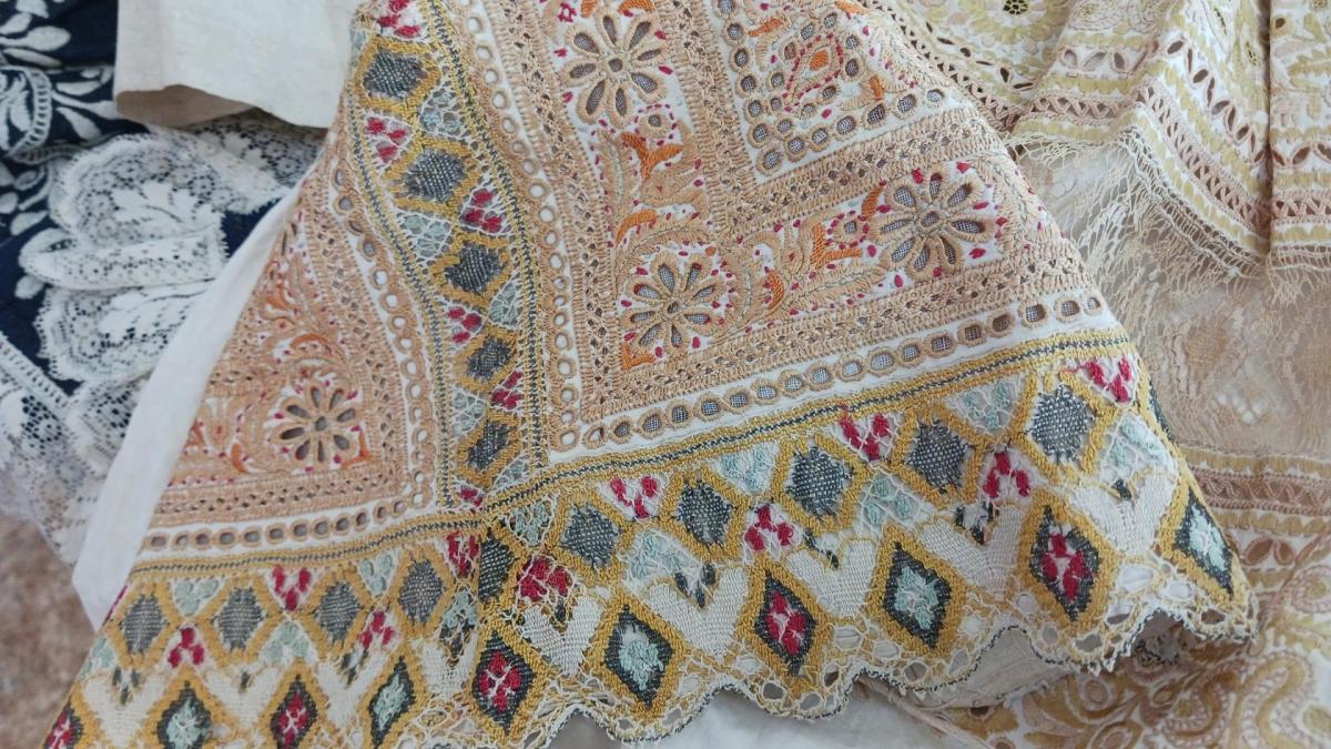 Během prvního setkání se přihlášené účastnice pod vedením paní učitelky Jany Petrové seznámily s různými druhy tradičních i současných moderních výšivek. Ty se liší použitým materiálem, způsobem šití, barevností a motivy. Prohlédly si práce z celého světa. Doslova osahat si mohly bohaté výšivky a krajky lidového kroje, který byl vystaven na Českoslovanské národopisné výstavě v Praze v roce 1895, část chebského kroje a další historické práce. Poté se věnovaly vlastnímu originálnímu návrhu a realizaci výšivky.