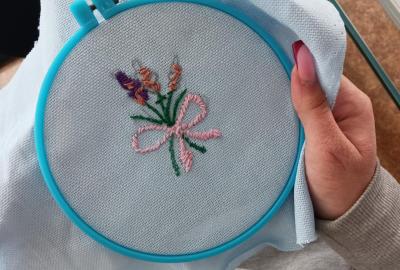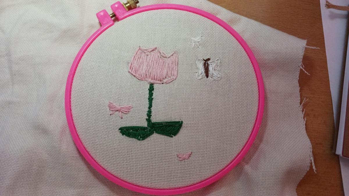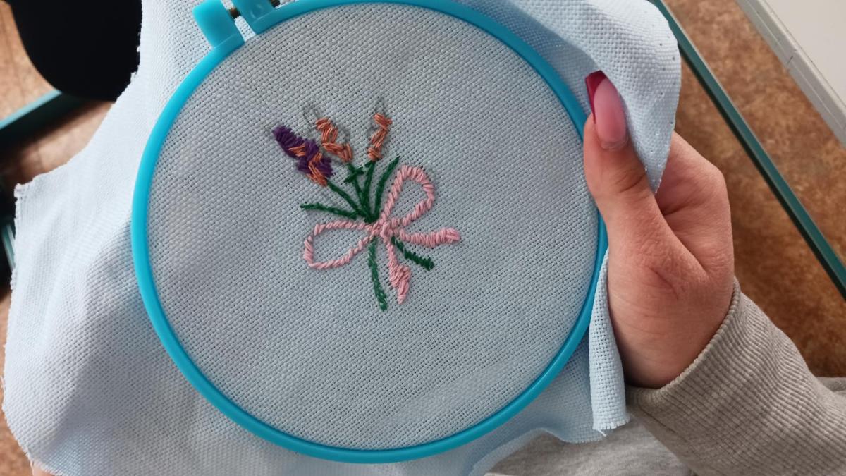 V rámci tématu Textilní tvorba se první projektový den žákyně věnovaly výšivce.