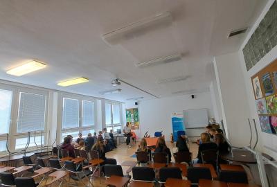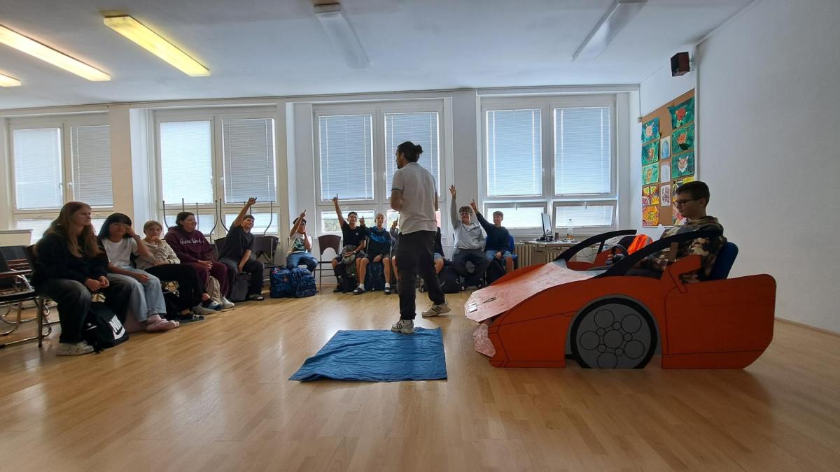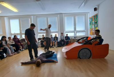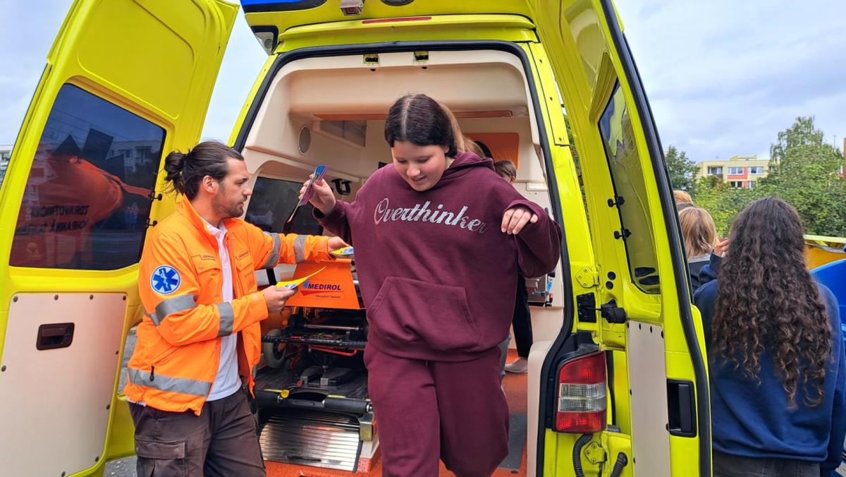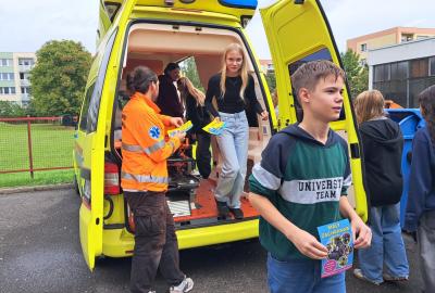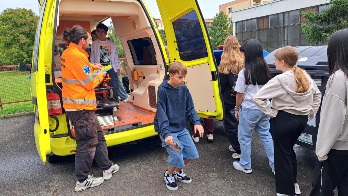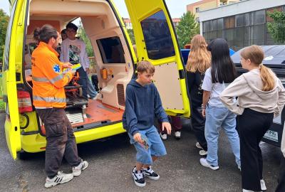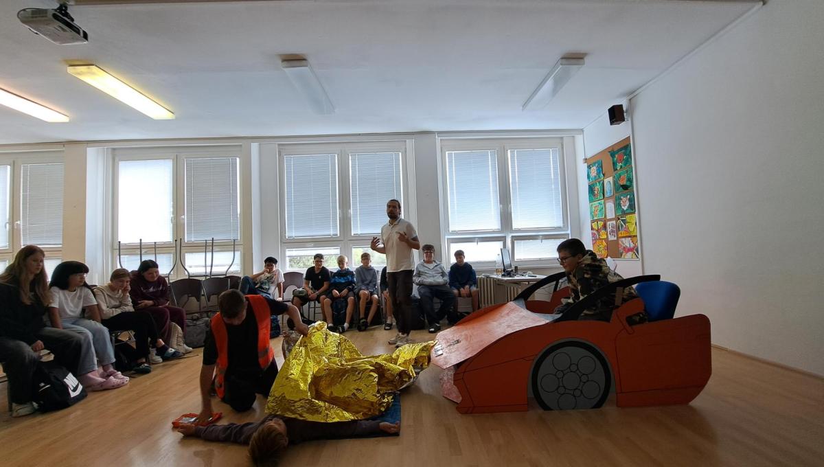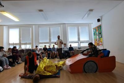Na záchranáře jsme se těšili, protože se dozvídáme zajímavé věci humornou formou. Zopakovali jsme si ošetření krvácení a na figurínách vyzkoušeli resuscitaci. Hlavním tématem byla dopravní nehoda. Vše, co jsme se dozvěděli teoreticky, jsme si také vyzkoušeli ve scénce, viz foto. Na závěr jsme si prohlédli sanitku, dostali diplom a byly nám zodpovězeny všetečné dotazy. Děkujeme paní učitelce Hausrové, že pro nás akci zorganizovala.