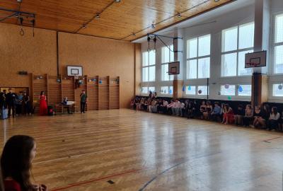 Školní parlament, za pomoci učitelů a vedení školy, zorganizoval pro druhý stupeň naší školy žákovský ples.