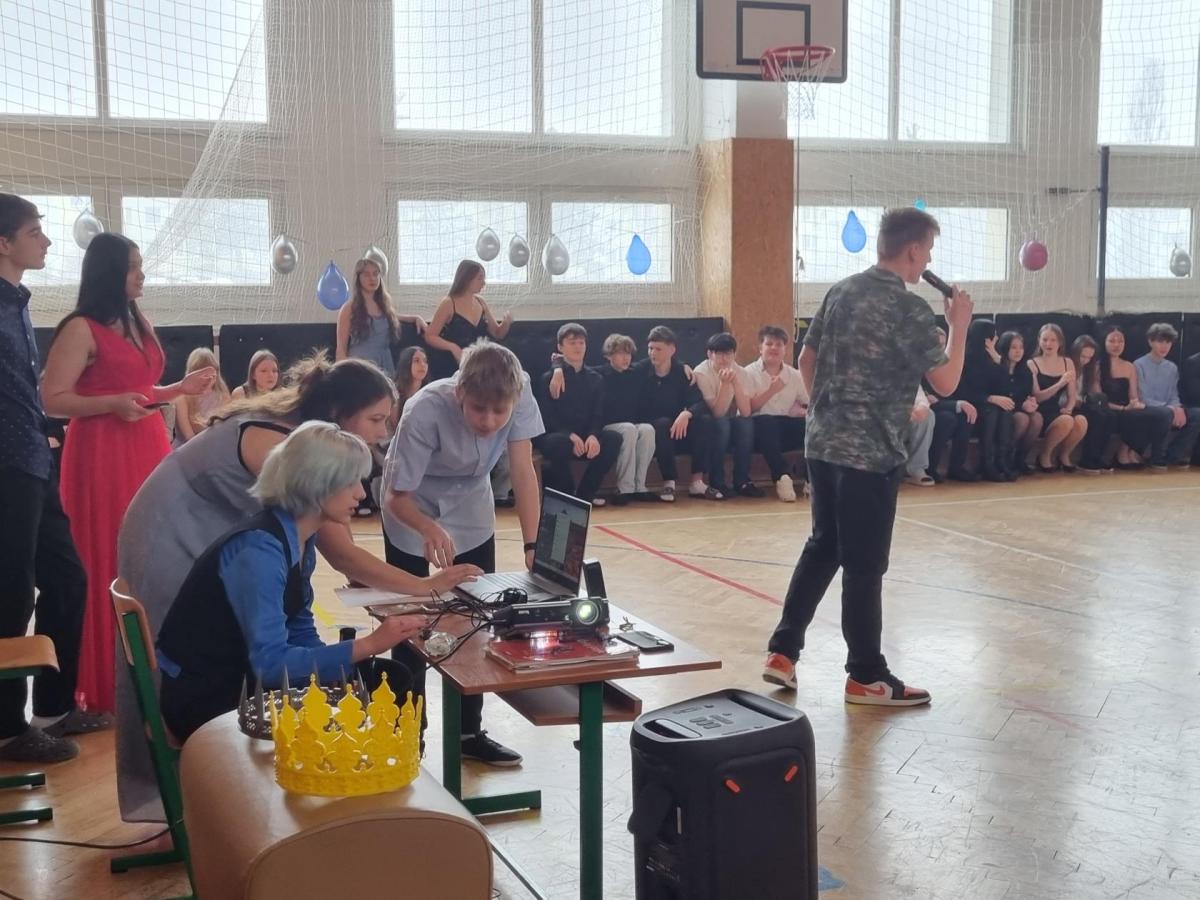 Ale protože každý krále potřebuje i královnu, tuto dvojici doplnila naše školní královna techniky a školního parlamentu, bez ní by ples nedopadl taak úspěšně a proto i jí byla na hlavu položena koruna, za kterou můžeme poděkovat panu učiteli Zdobinskému, který ji pro naše "panovnictvo" vlastnoručně vyrobil pomocí 3D tisku.