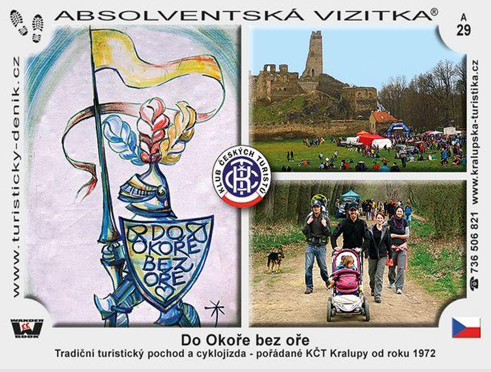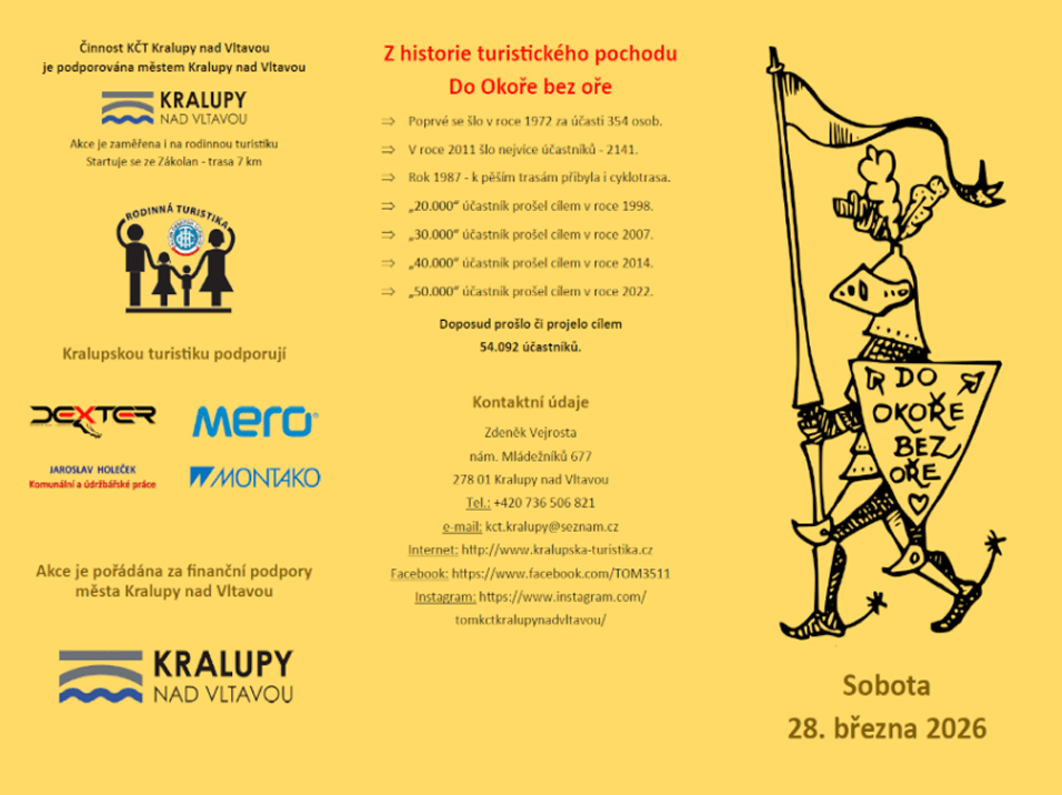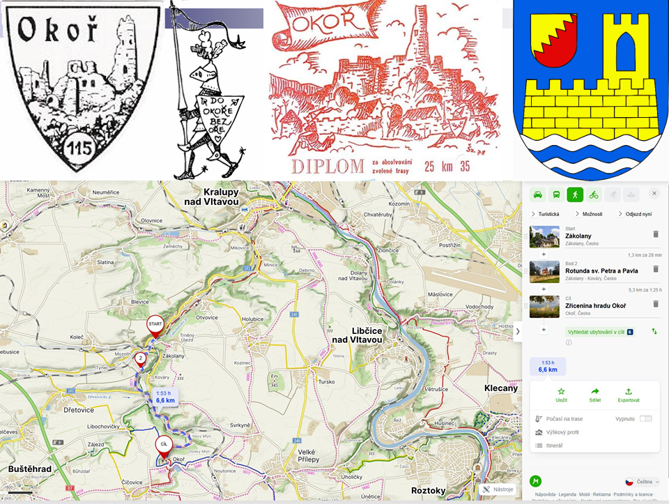 Trasa: „Do Okoře bez oře“= Zákolany, Budeč, Podholí, Nový Mlýn, Višňovka, Rafanda, Dolský Mlýn, Okoř. Podpoříme turistický pochod organizovaný Klubem českých turistů (KČT) Kralupy nad Vltavou.