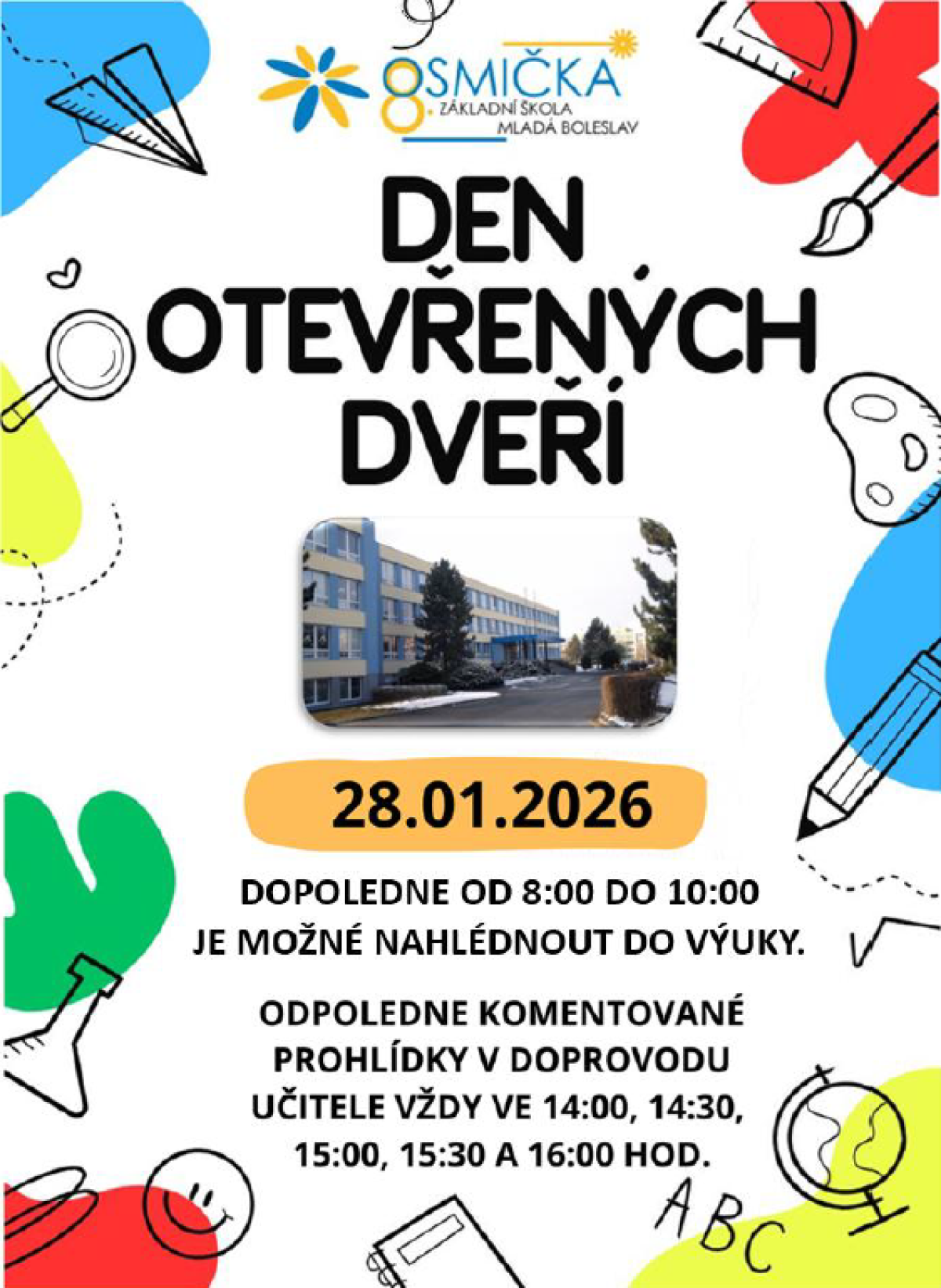 Srdečně zveme všechny zájemce o studium, bývalé žáky i širokou veřejnost na den otevřených dveří, který se uskuteční ve středu 28. 1. 2026