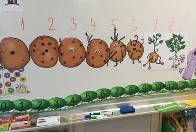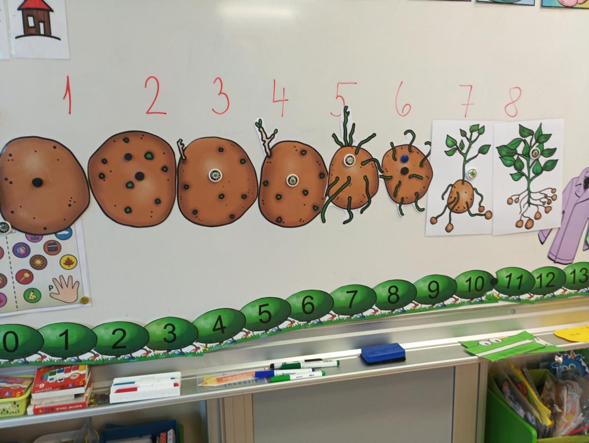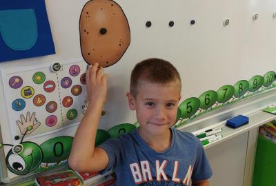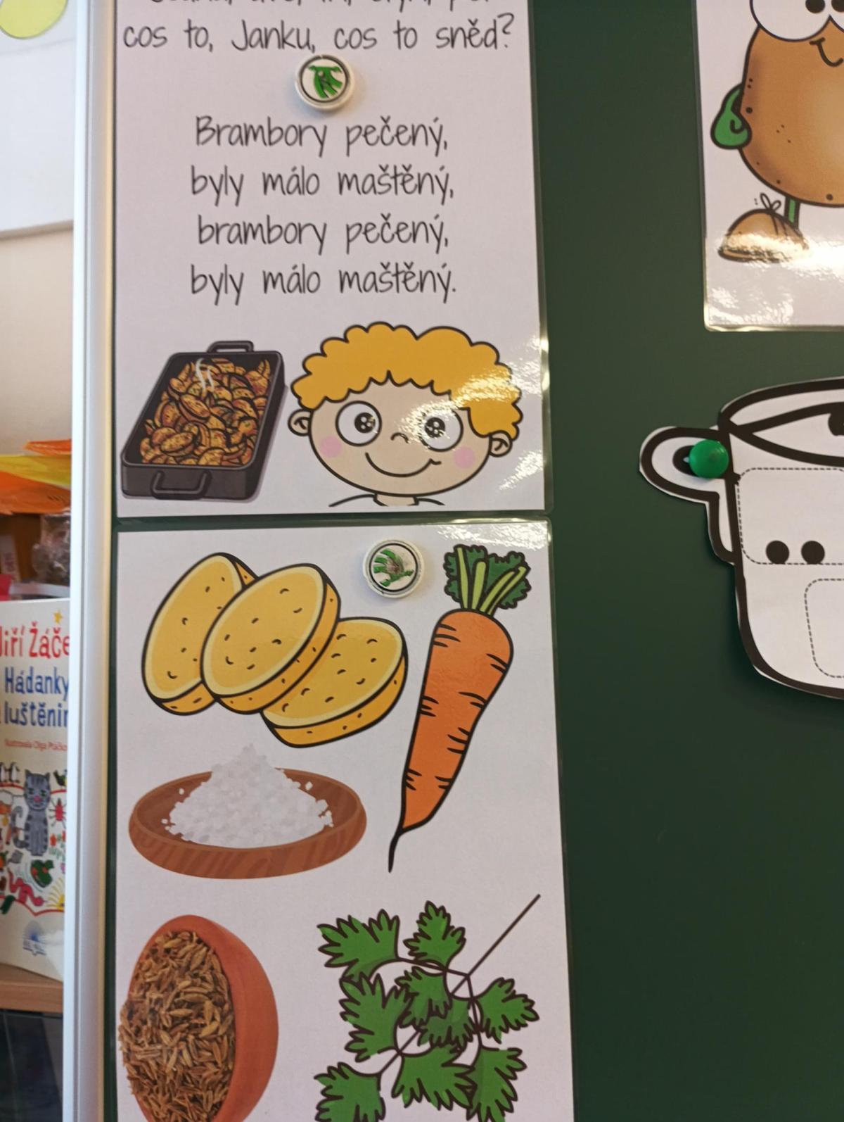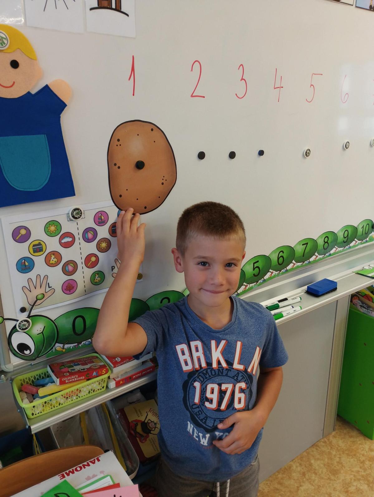 Dne 16.10. proběhl ve třídě projekt: Bramborové dny. Děti skládaly jídla z brambor, vytleskávaly slabiky a tiskaly. Každý žák dostal svůj hrnec, do kterého lepil ke správným grafickým symbolům slabik ingredience do polévky. Také si prvňáčci poslechli pohádku O Brambůrce a struhadlu.