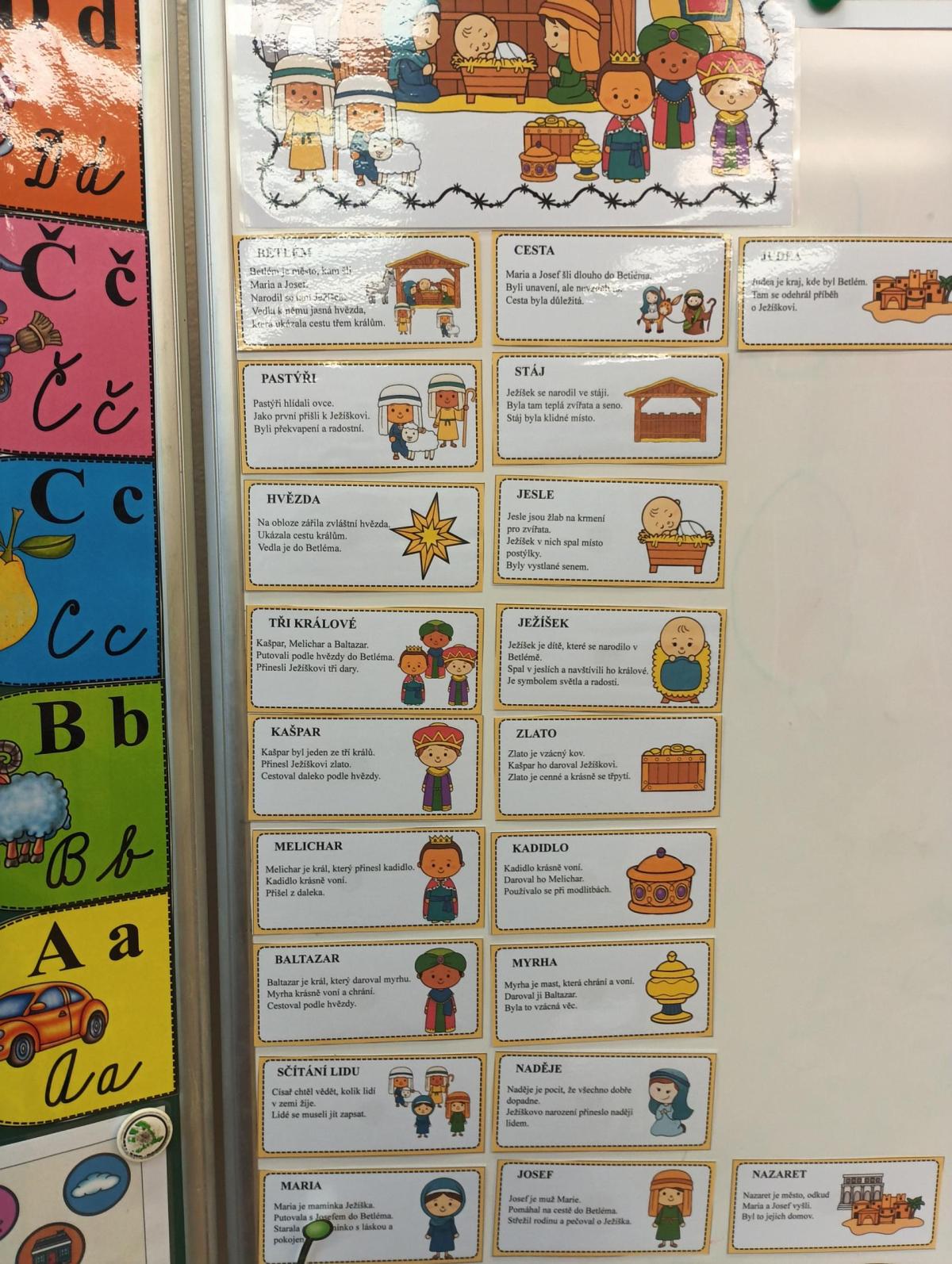 Tři králové (Kašpar, Melichar, Baltazar) byli moudří muži z dalekých zemí. Následovali hvězdu, která je dovedla až k Ježíškovi. Přinesli mu zlato, kadidlo a myrhu. Jejich cesta je symbolem víry, vytrvalosti a úcty.