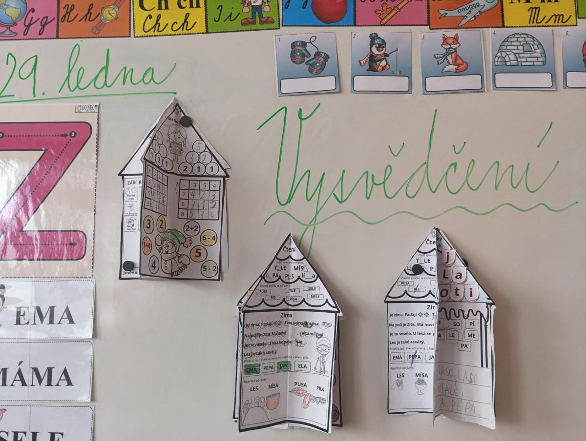 Dne 29.1. se vydávalo úplně první vysvědčení. Ale nejdříve prvňáčci plnili mnoho úkolů.