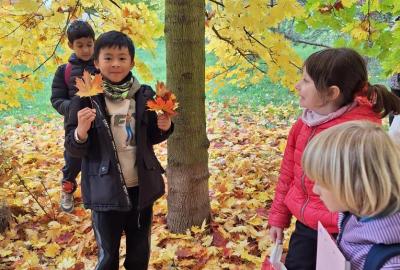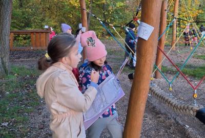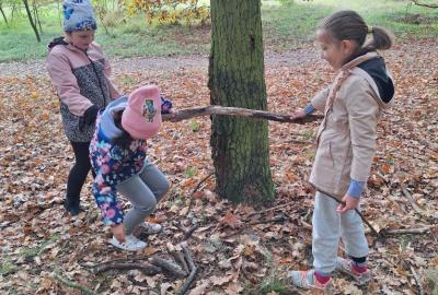 Stavěli jsme z přírodnin domečky, zkoumali stromy a plnili úkoly na podzimní stezce.