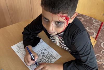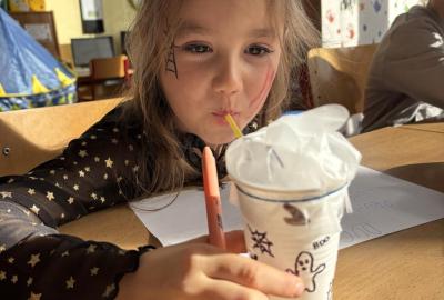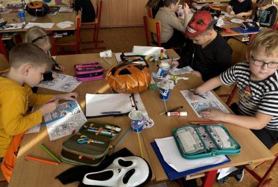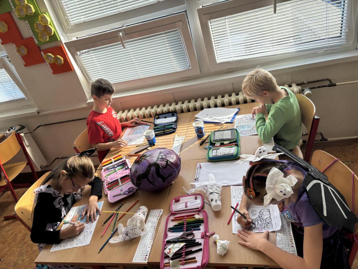 - říjen byl ve znamení Halloweenu a ve škole se to hemžilo samými originálními maskami. Do převleků se oblékly nejen děti, ale také učitelé a asistentky, takže atmosféra byla opravdu kouzelná – i trochu strašidelná.