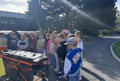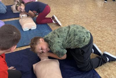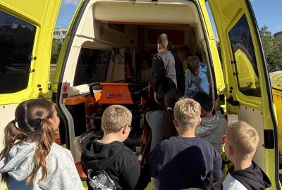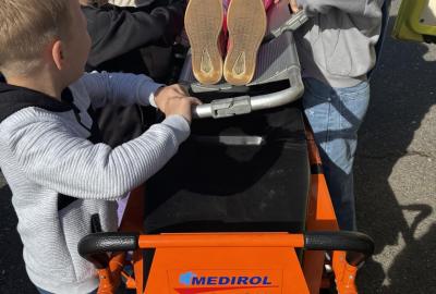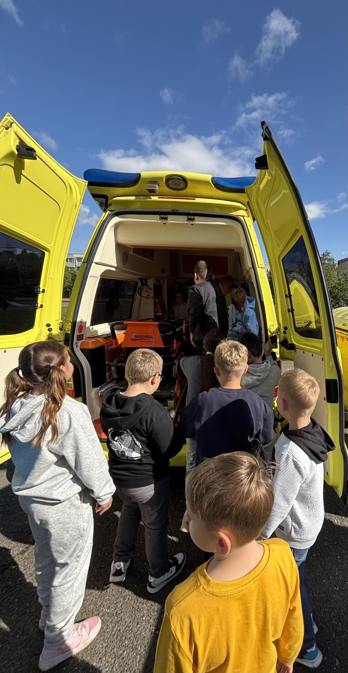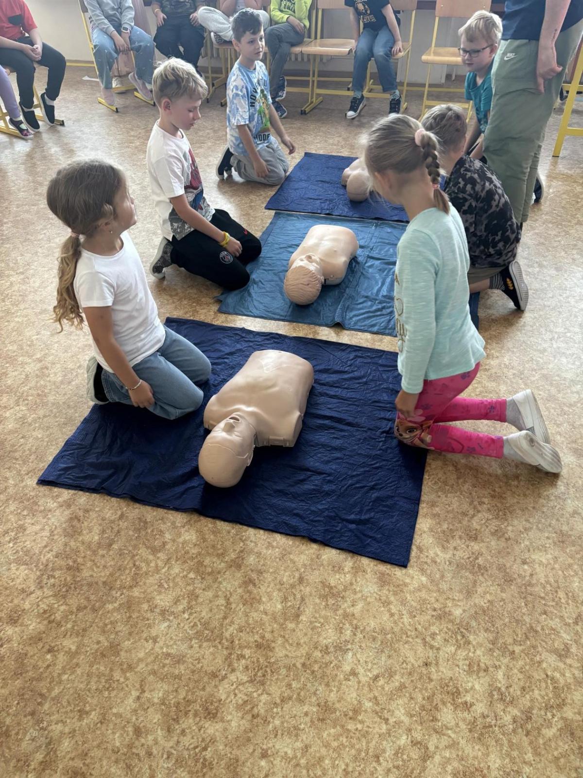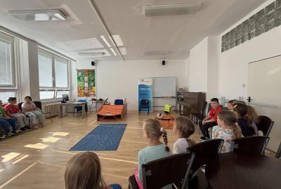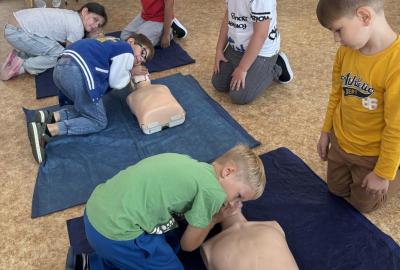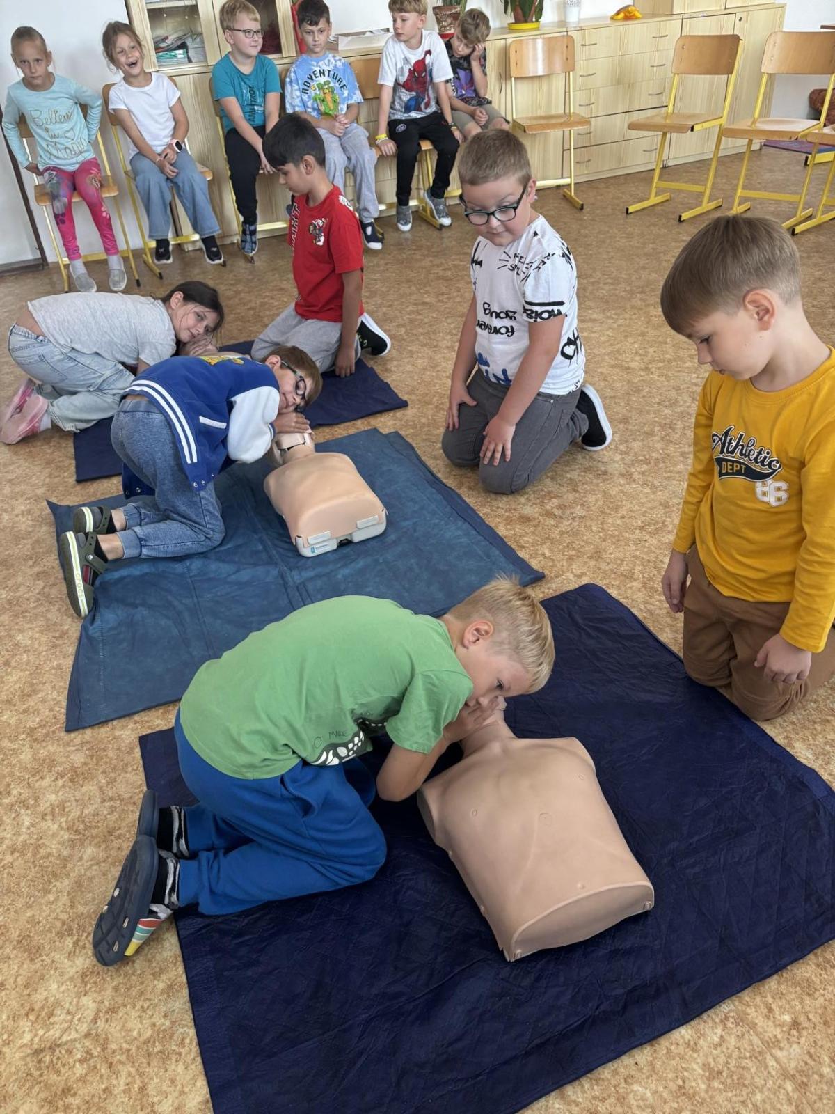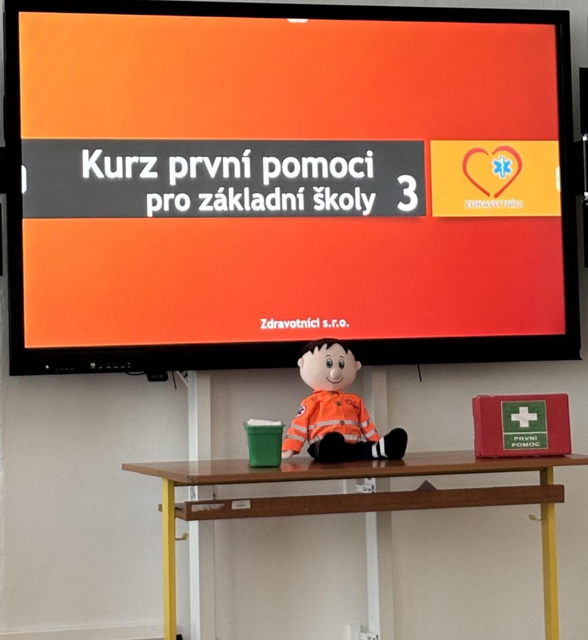 Připravili si pro nás program, při kterém jsme se učili poznat situace ohrožující život, ošetřit drobná zranění, provést resuscitaci a zavolat pomoc. Mohli jsme si také prohlédnout vozidlo záchranné služby i vybavení, které záchranáři používají.