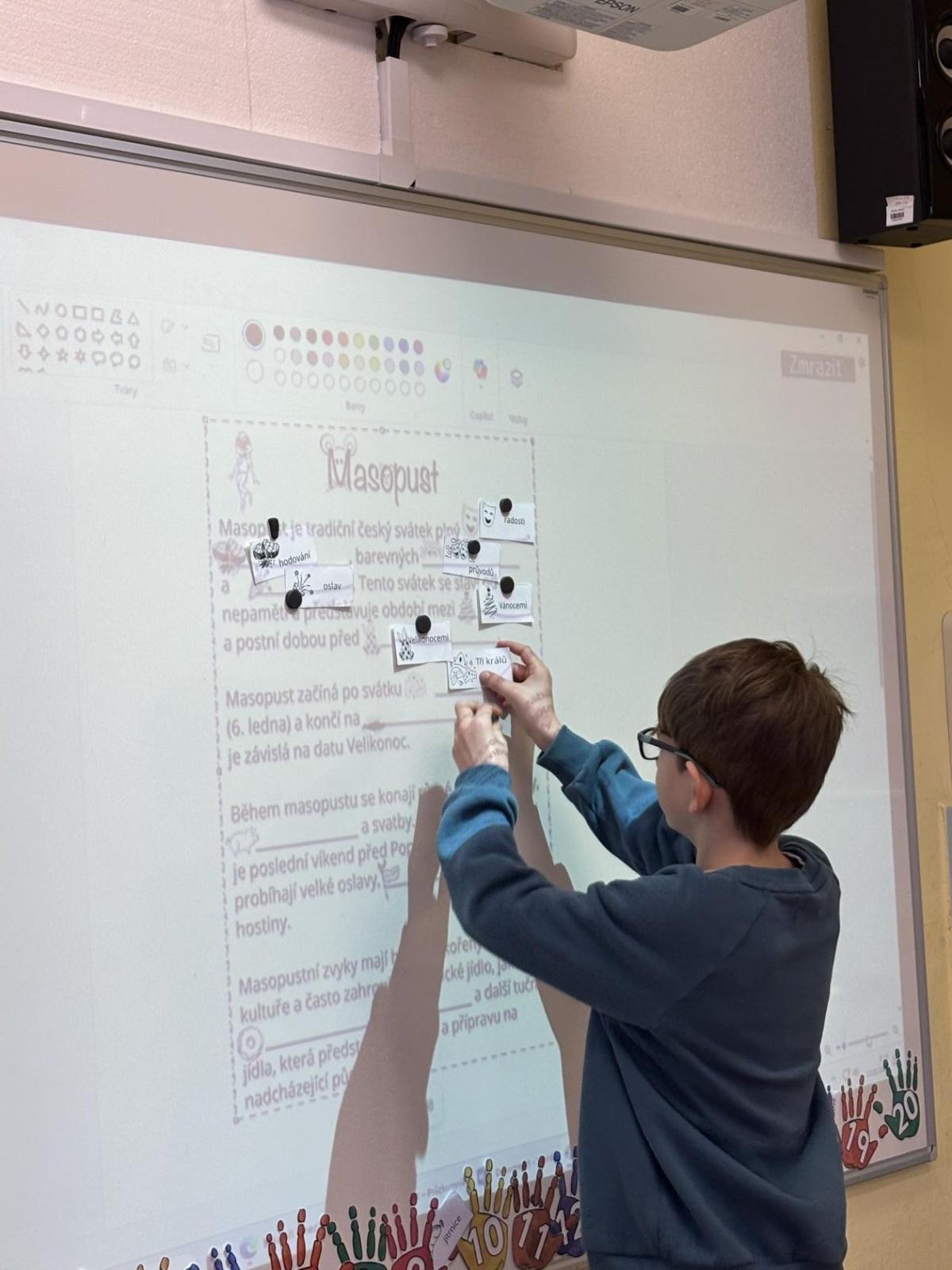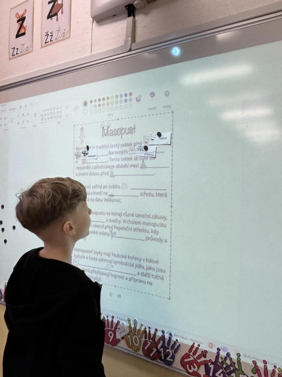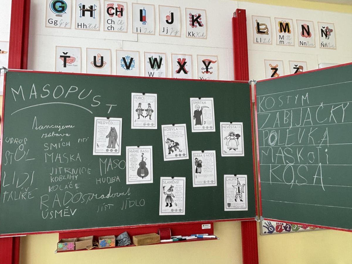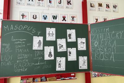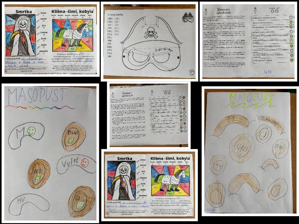 V naší třídě jsme si připomněli také tradiční svátek Masopust. Nejprve jsme se společně seznámili s masopustními tradicemi a povídali si o tom, jak se tento veselý svátek slavil dříve. Dozvěděli jsme se, jaké postavy se objevují v masopustním průvodu.