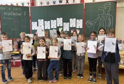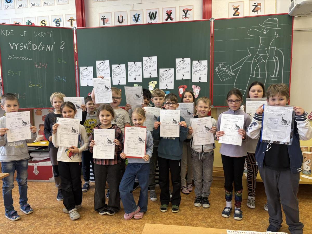 Pololetí jsme zakončili netradičně - děti si místo obyčejného předávání vysvědčení vyzkoušely detektivní hru, při které musely pátrat, kde je jejich vysvědčení ukryté.