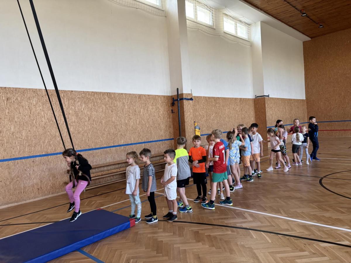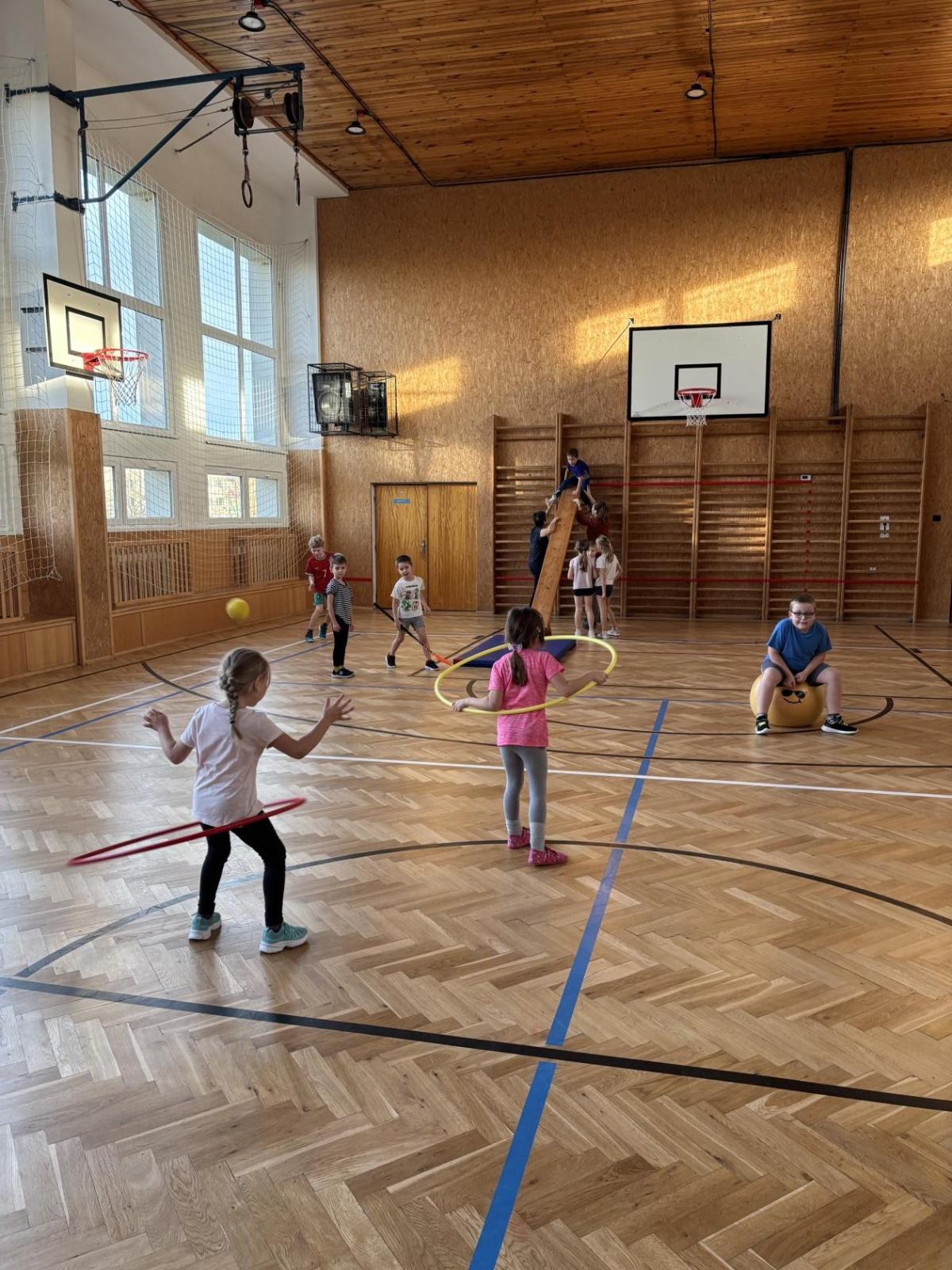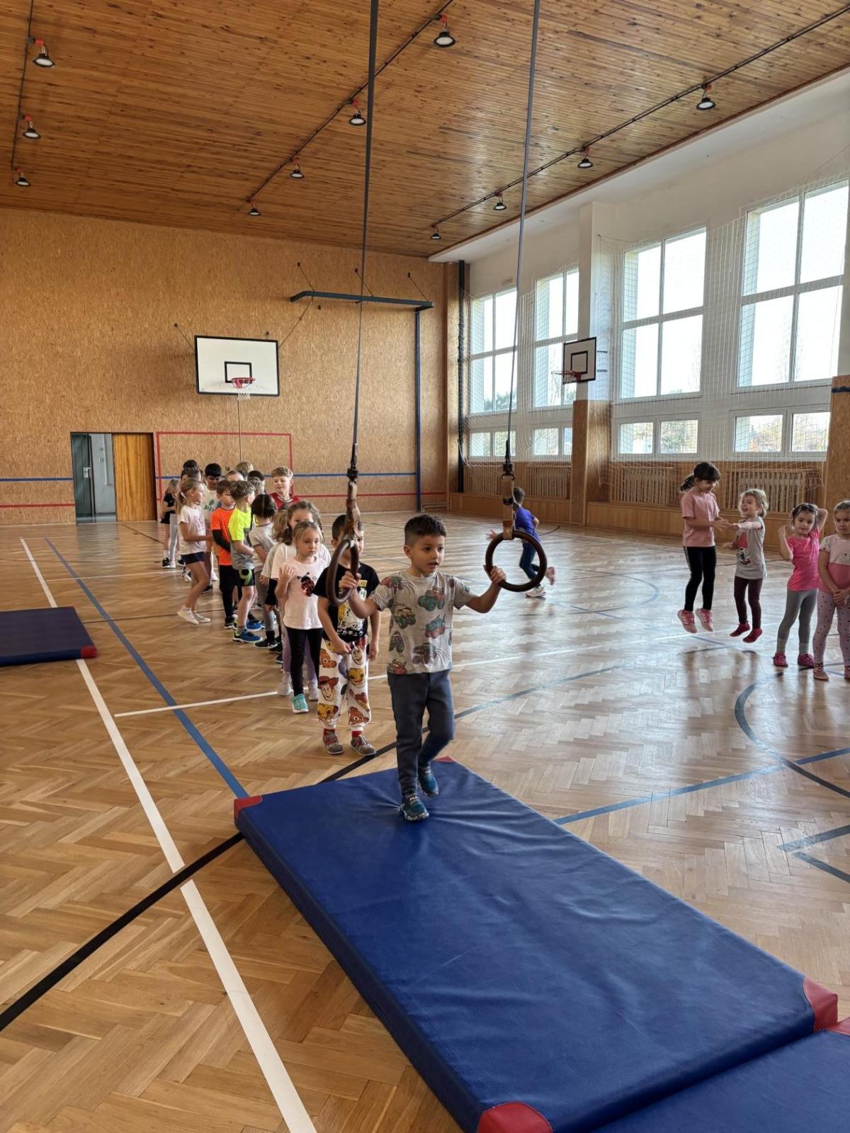 Druháci si užili společné cvičení v tělocvičně s předškoláky z MŠ Vandrovka. Děti si procvičovaly pohybové dovednosti, soutěžily a spolupracovaly.