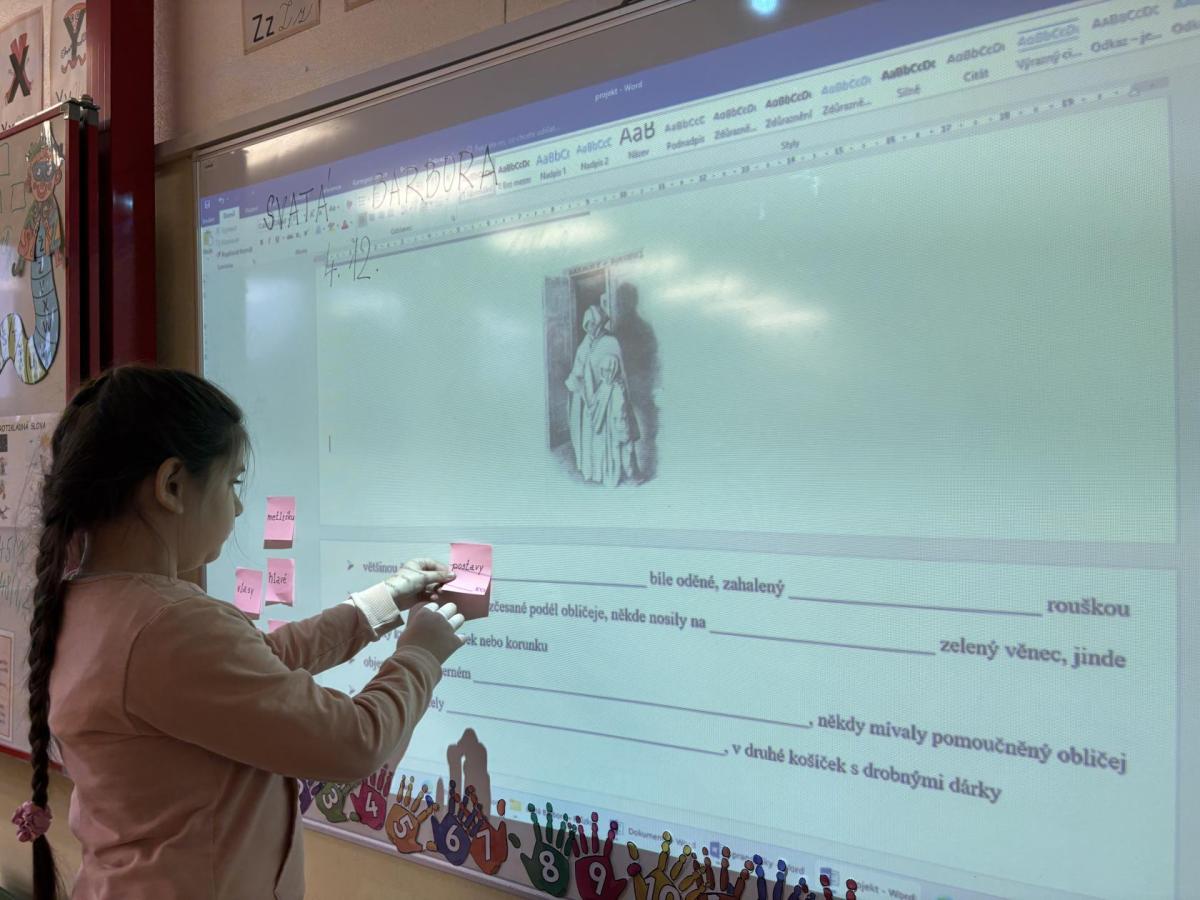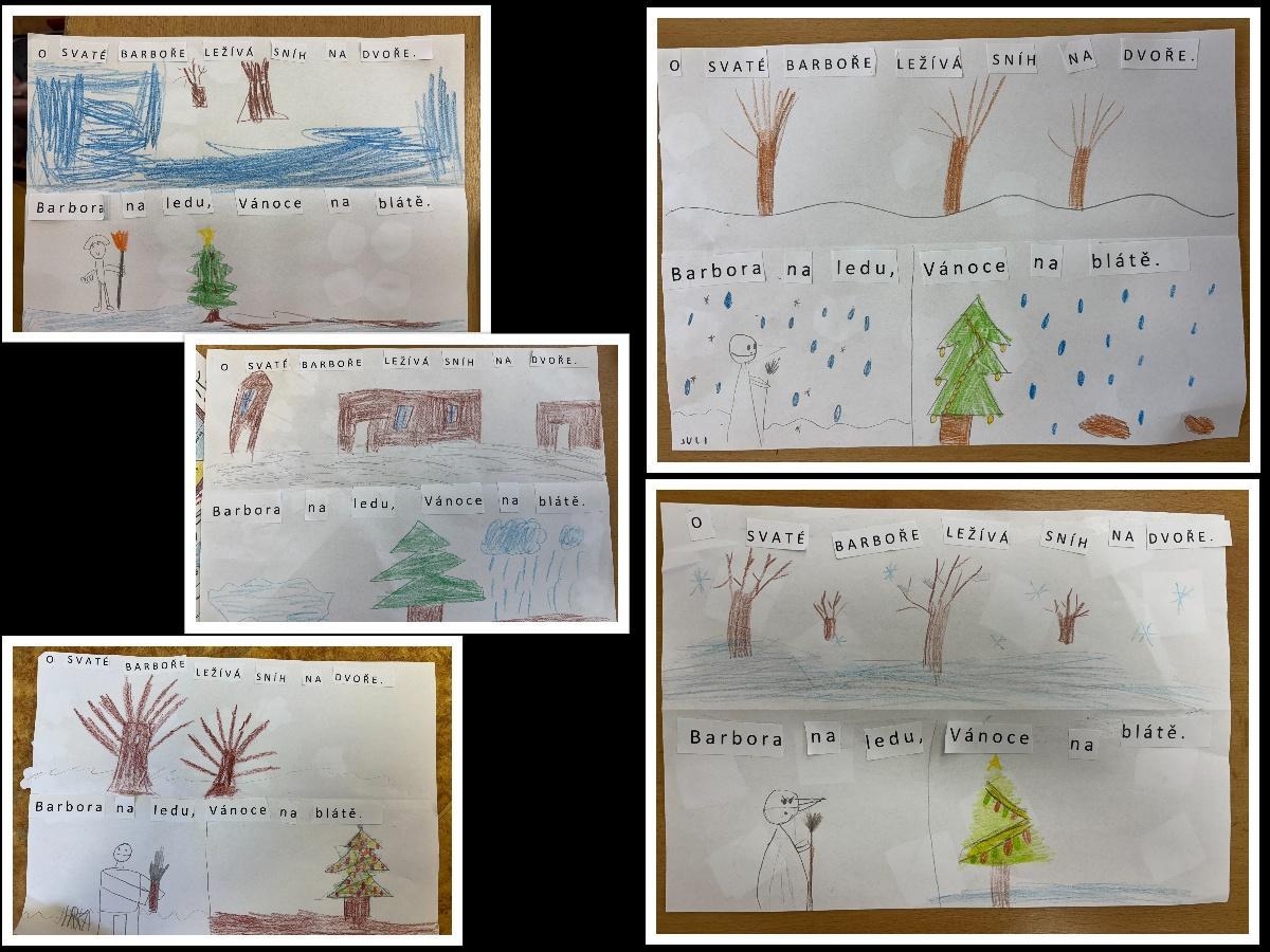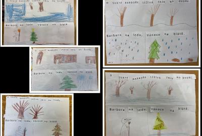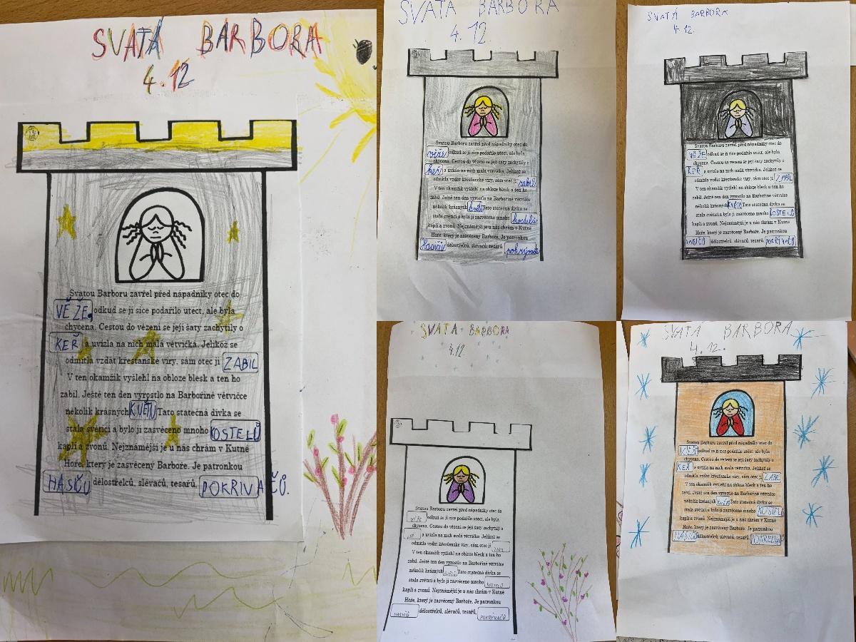 Začátek prosince si žáci zpestřili povídáním o svaté Barboře a zvycích, které se k tomuto svátku pojí. Děti si z 1. třídy zopakovaly, proč se na tento den řežou barborky, co symbolizují a jak lidé v minulosti prožívali adventní čas.
