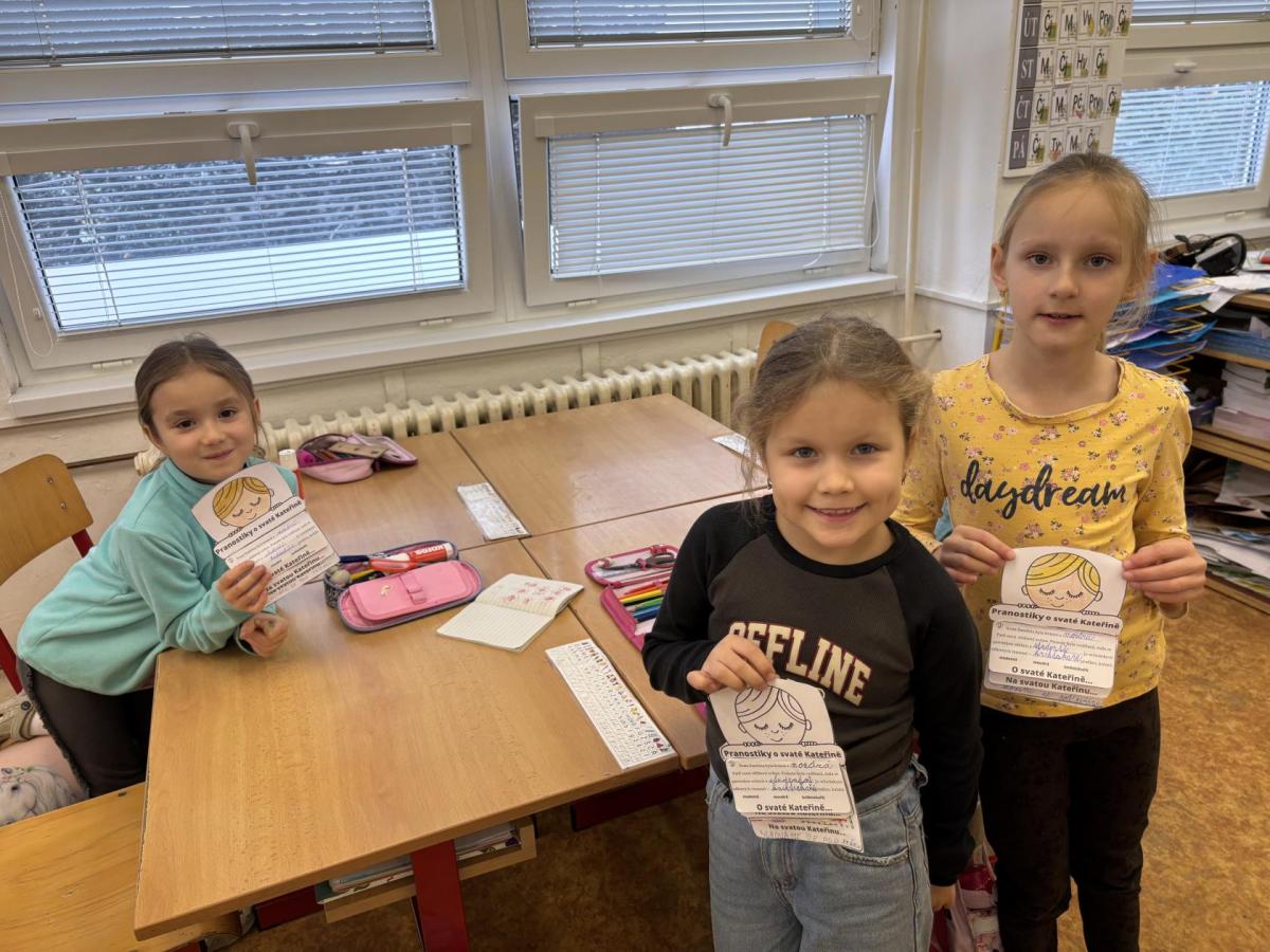 V úterý 25. listopadu se žáci zapojili do projektového dne v centrech aktivit, který byl tematicky zaměřen na svátek svaté Kateřiny a lidové tradice s ním spojené. Celým projektem se prolínala spolupráce, objevování a hravé procvičování učiva.