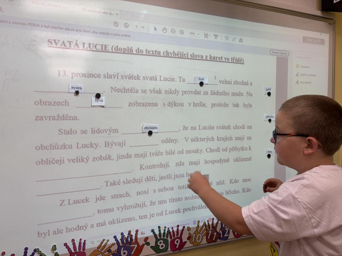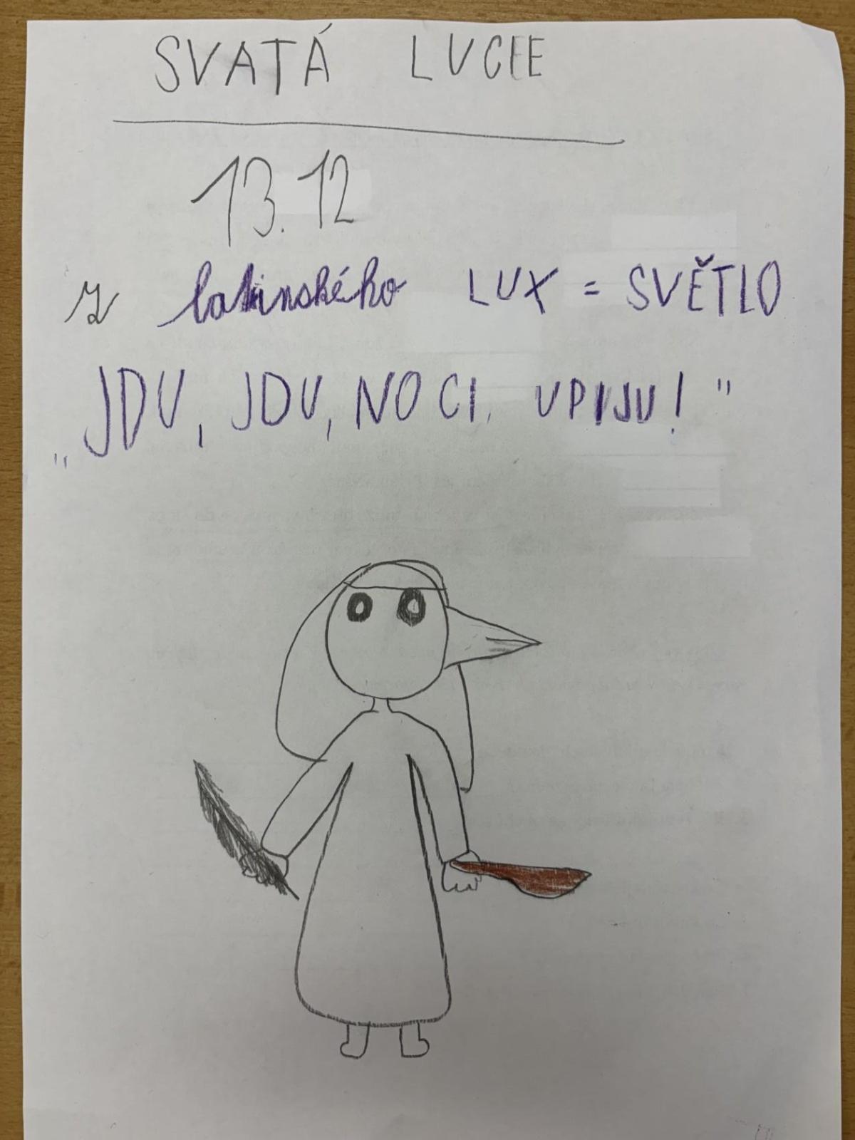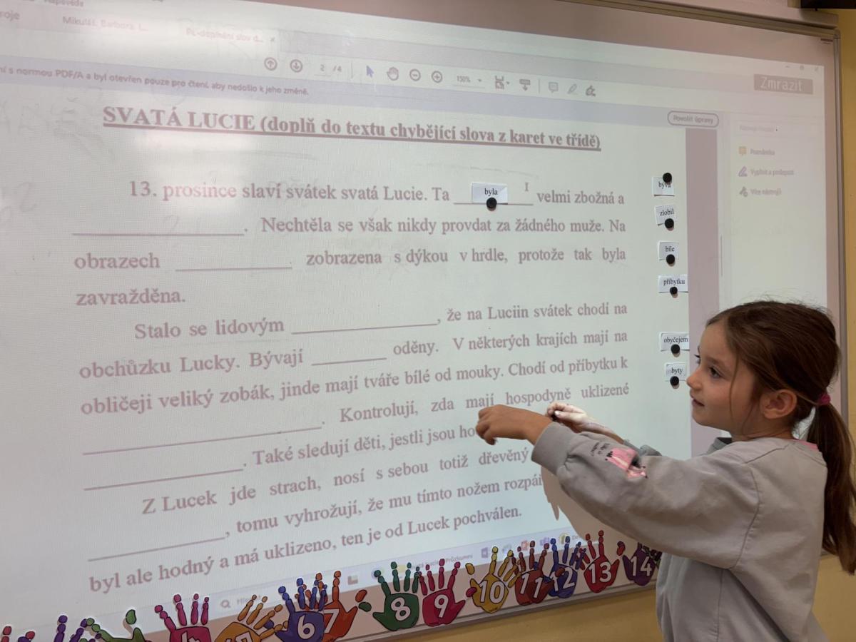 Žáci se seznámili se svátkem sv. Lucie a tradicemi. Povídali jsme si o tom, kdo byla svatá Lucie a proč je tento den spojován se světlem a blížícími se Vánocemi. Hravými aktivitami si děti upevňovaly učivo, pracovaly s textem a tvořily. Výuka probíhala v klidné adventní atmosféře a pomohla žákům lépe porozumět významu tohoto tradičního svátku.