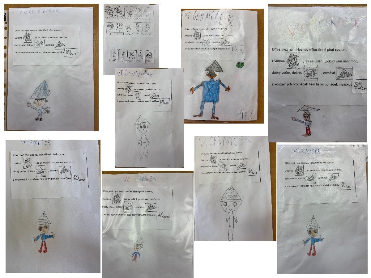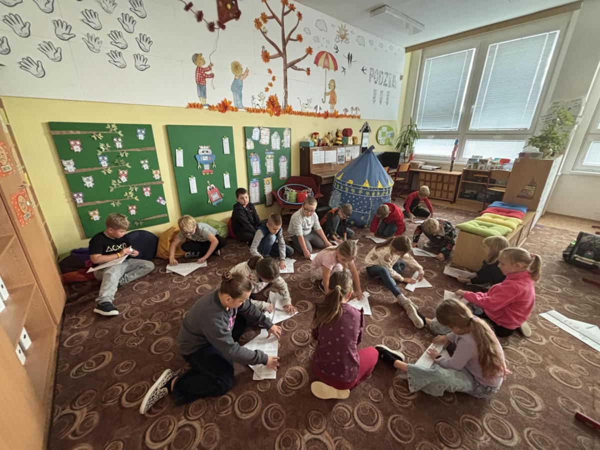 Celý den jsme pracovali v centrech aktivit, kde jsme si hravou formou procvičili učivo. Celý den se nesl v duchu vzpomínek na oblíbené večerníčky, společného sdílení a radosti z učení. Na závěr jsme si pustili krátkou ukázku původního Večerníčku a zazpívali si známou znělku. Nemohlo chybět i vyrábění .