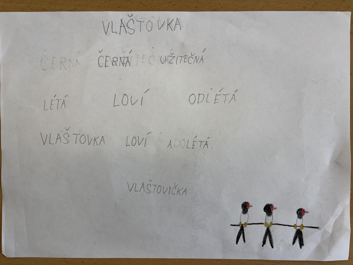 Při podzimním říjnovém putování nesmíme zapomenout na vlaštovky. Žáci si zopakovali informace z 1. třídy a získávali další.