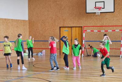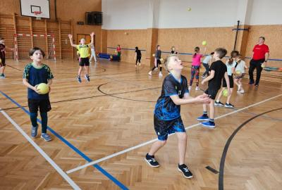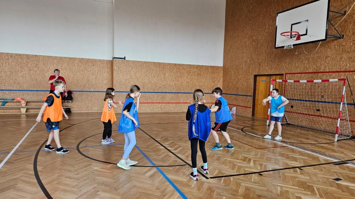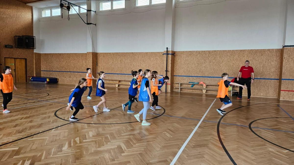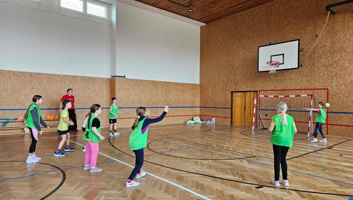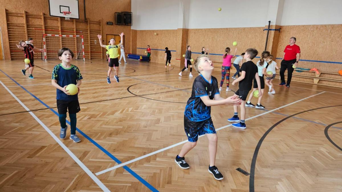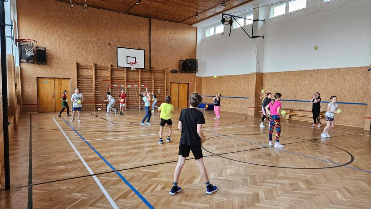 V hodině tělesné výchovy nás navštívil trenér házené, který nás provedl herní technikou a pravidly.