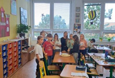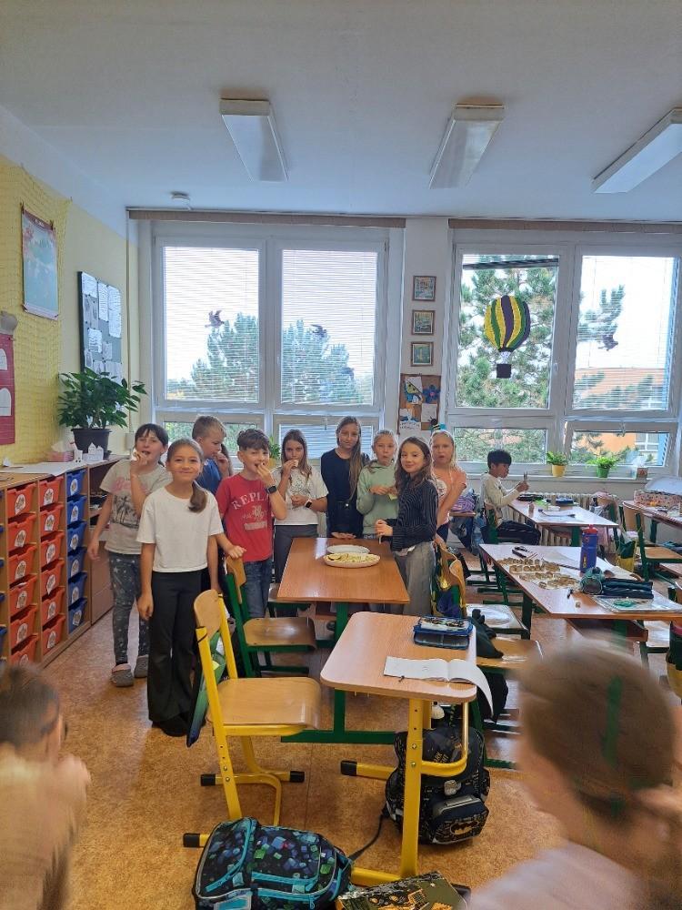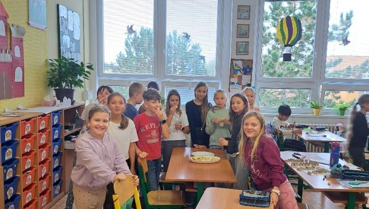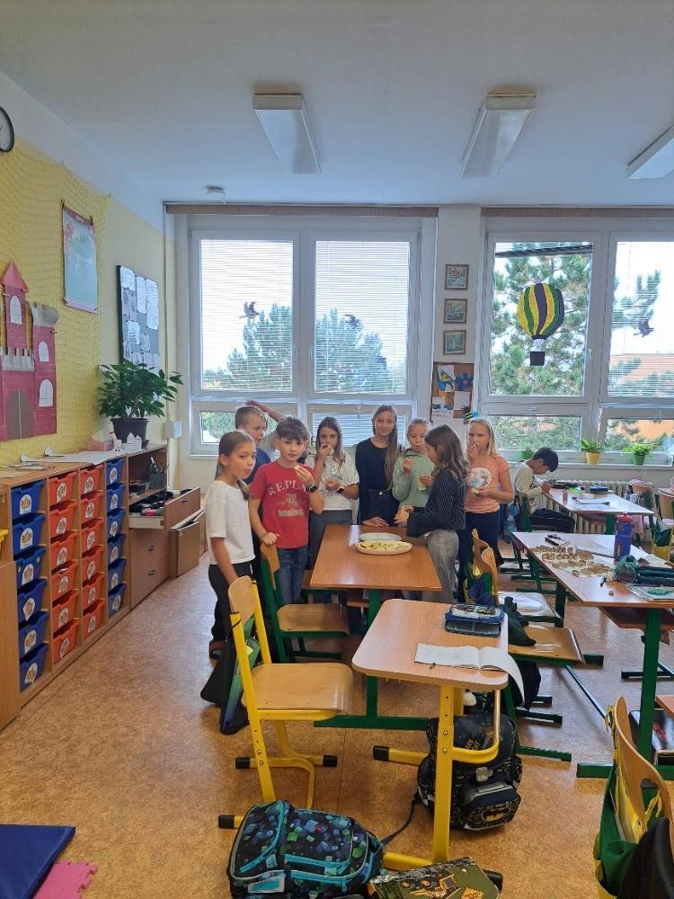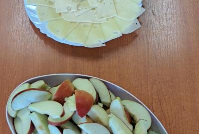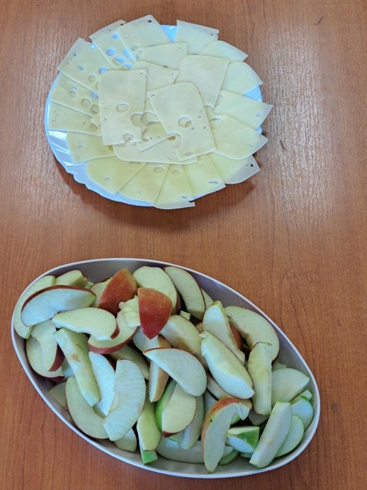 Žáci dostali v rámci projektu "Ovoce a mléko do škol" různé druhy jablek a plátkových sýrů. Vše jsme nakrájeli a ochutnávali.