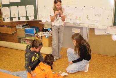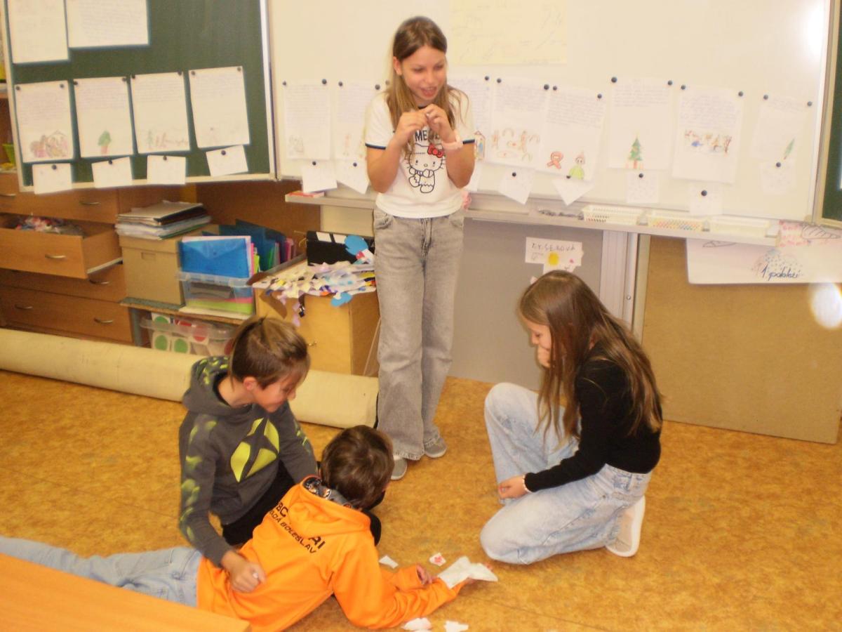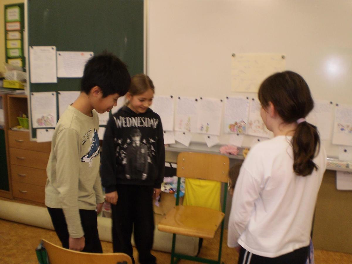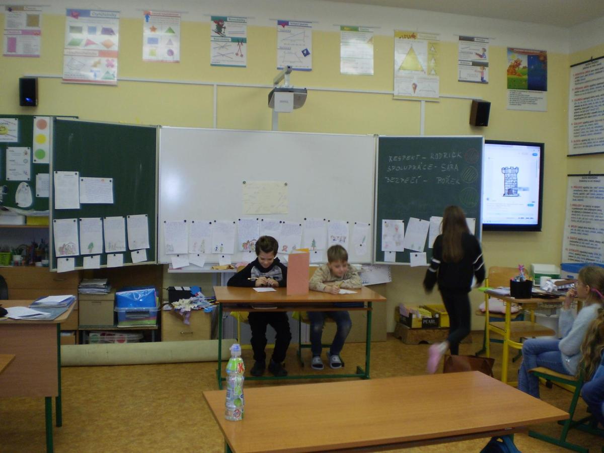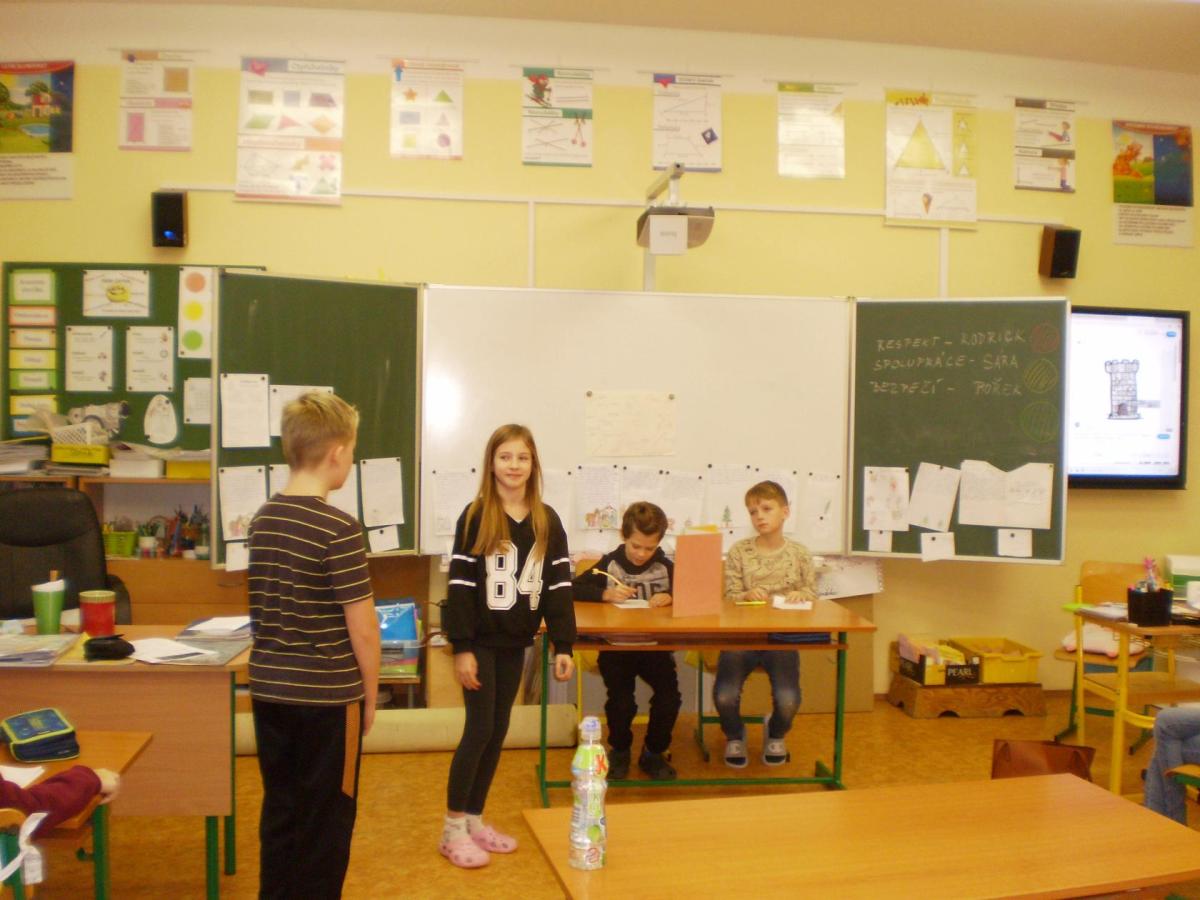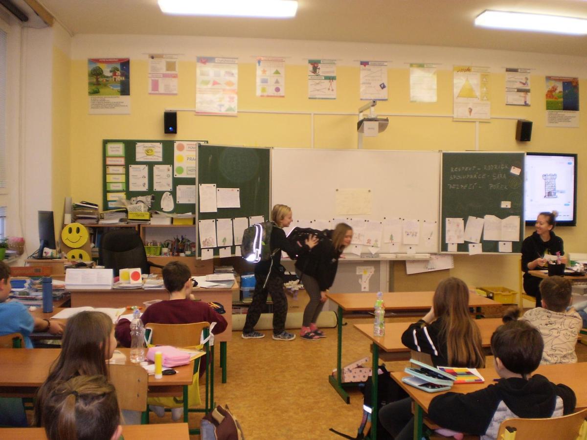 Snažíme se rozvíjet a dodržovat základní hodnoty na téma: BEZPEČÍ, RESPEKT, SPOLUPRÁCE. Tentokrát jsme řešili chování na chodbách. Děti samy přišly na správné řešení problémových situací, které jsme si názorně ukázali ve scénkách. Vyhodnocovali jsme, kdy jsou schopné řešit situace samostatně, a kdy už je důležité i pomoc dospělé osoby.