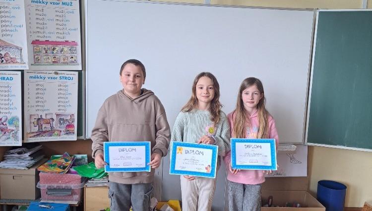 Na naší škole proběhla recitační soutěž. Nejdříve proběhlo třídní kolo, kde jsme hlasováním vybrali tři nejlepší z naší třídy, kteří nás reprezentovali ve školním kole, které se konalo 12. března. Iana Nikolaeva ve své kategorii vyhrála v konkurenci žáků 4.-5. tříd a postoupila do okresního kola. Budeme ji držet palce.
