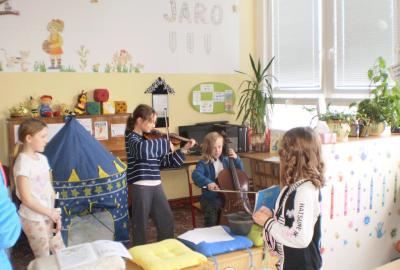 Ve čtvrtek 19. března se na naší škole konal jarmark, který se nesl v příjemném velikonočním duchu. U našeho stánku jsme si letos připravili i zpestření ve formě hudebního vystoupení.