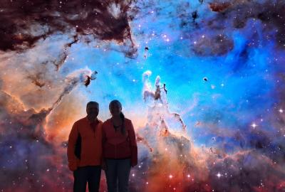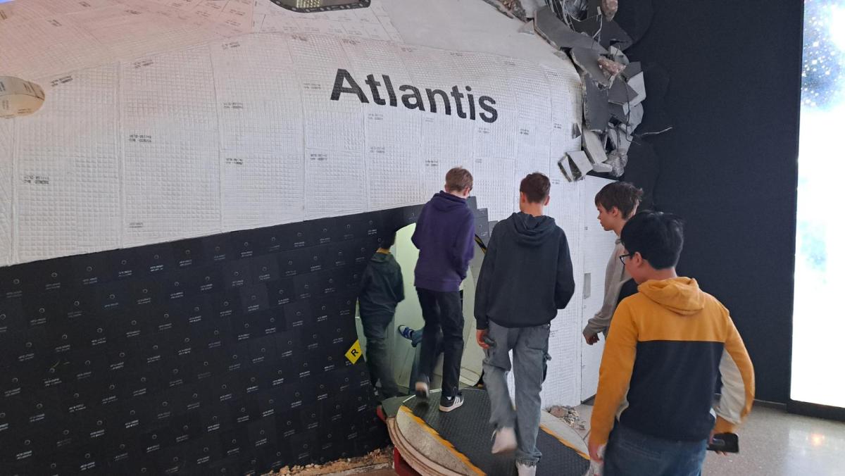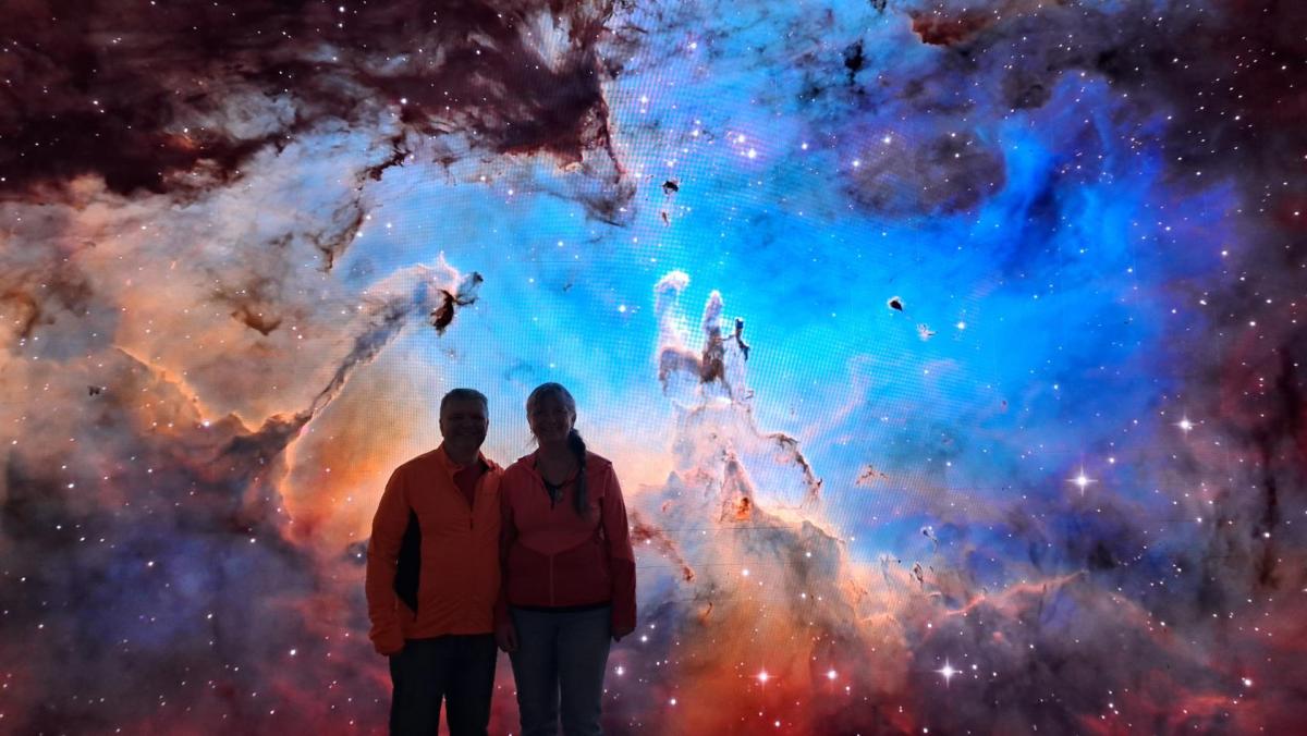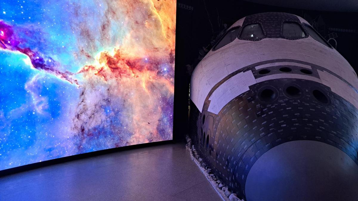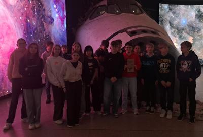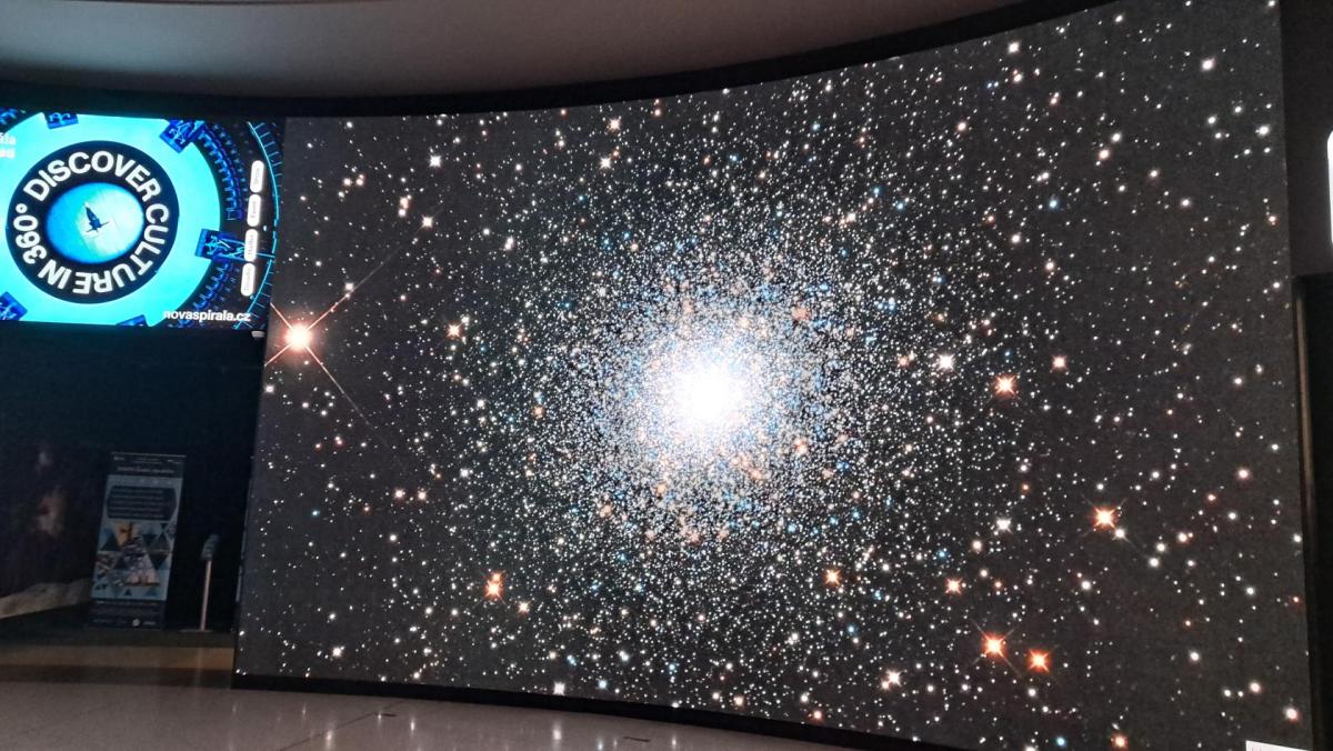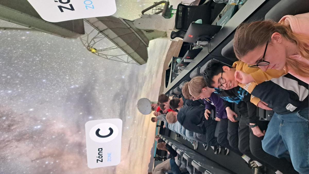 Nedávno rekonstruované planetárium v Praze nás lákalo k návštěvě neboť se jedná o jedno z nejmodernějších na světě. A opravdu návštěva stála za to. Před samotným promítáním jsme si mohli prohlédnout expozici s modely raketoplánu a interaktivními panely. Vyfotili jsme se s nádhernými obrovskými LED-panely s galaxiemi.