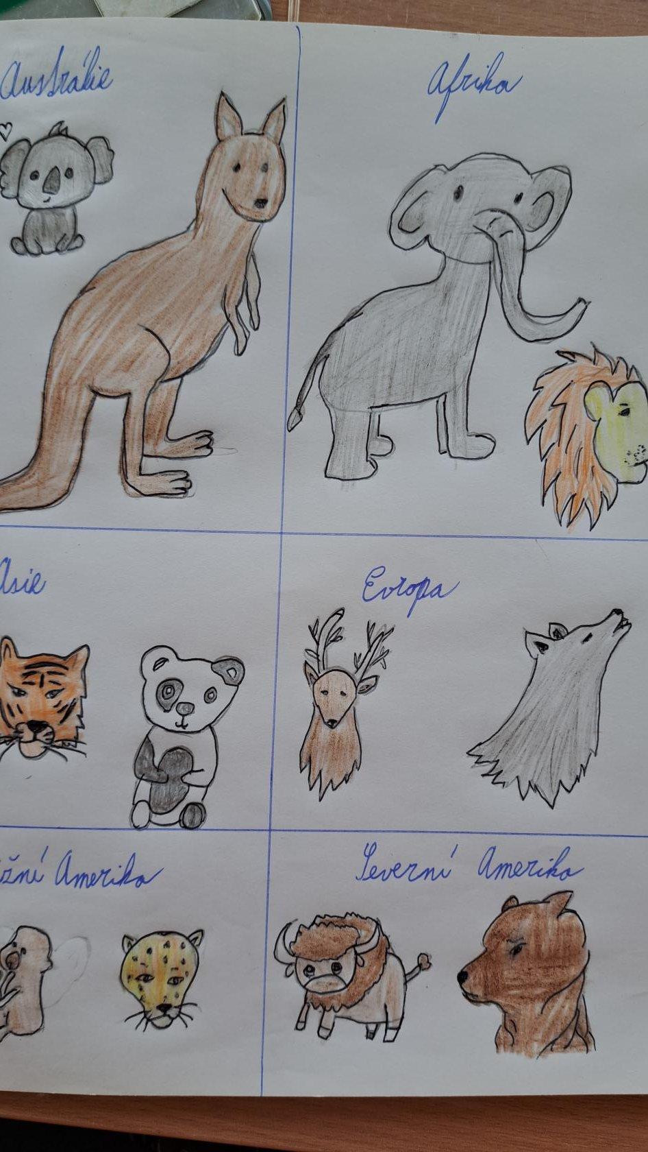 V rámci zeměpisu jsme se učili typická zvířata pro jednotlivé kontinenty.