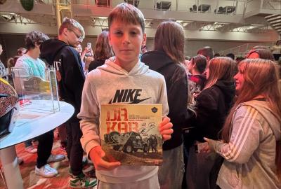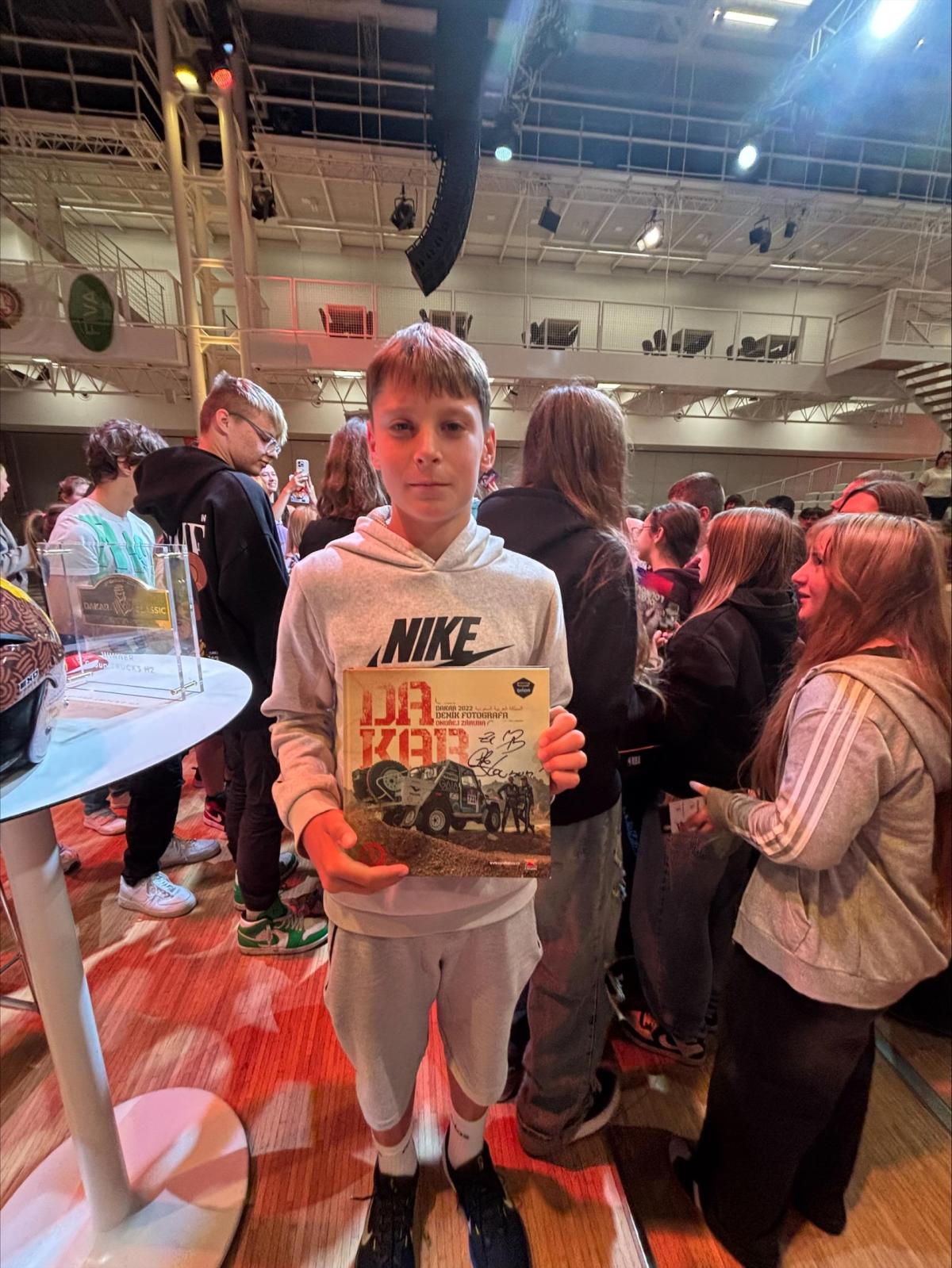 Žák Vadym ze 7.B si navíc odnesl i podepsanou knihu, kterou vyhrál za správnou odpověď na otázku z filmu. Gratulujeme!