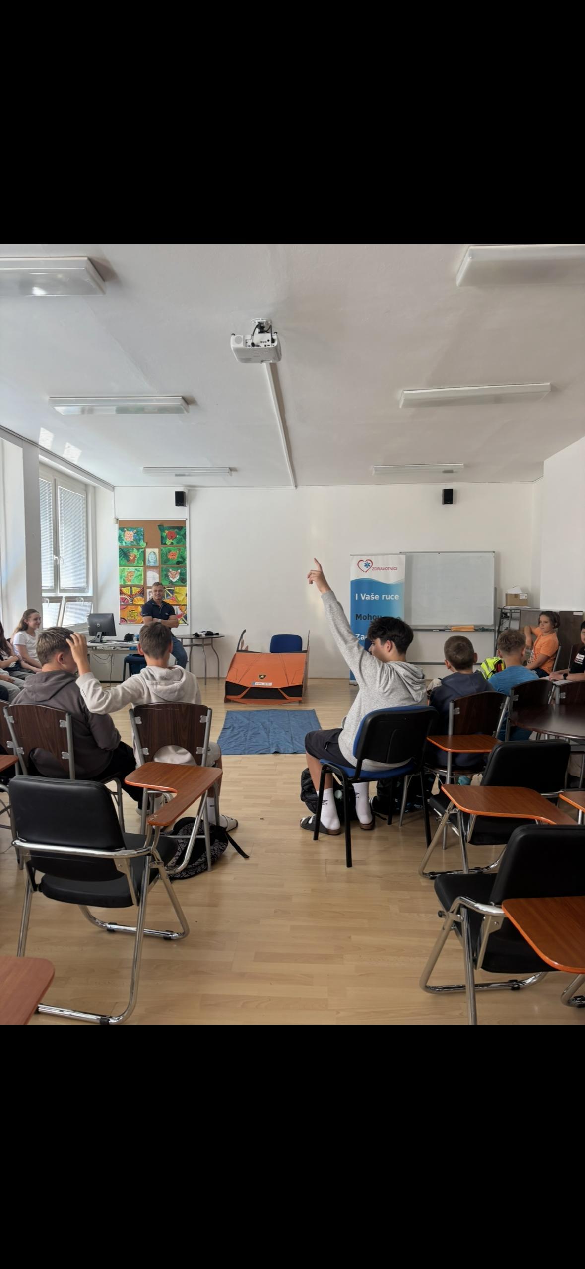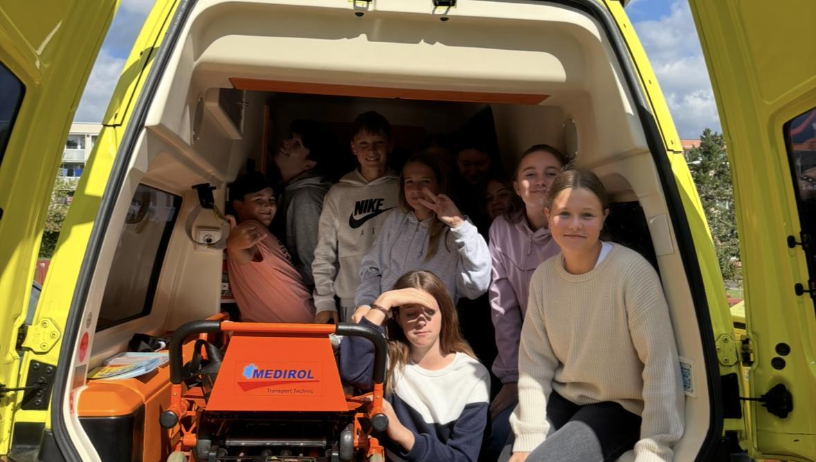 Dne 16. 9. navštívili třídu 7.B záchranáři se svým projektem "Dny pro záchranu života". Žáci si upevnili a prohloubili znalosti z první pomoci. Dále se projekt zaměřil na dopravní nehody. Žáci si poslechli a zároveň vyzkoušeli, jak v téhle těžké situaci postupovat. Nakonec se podívali i do sanitky.